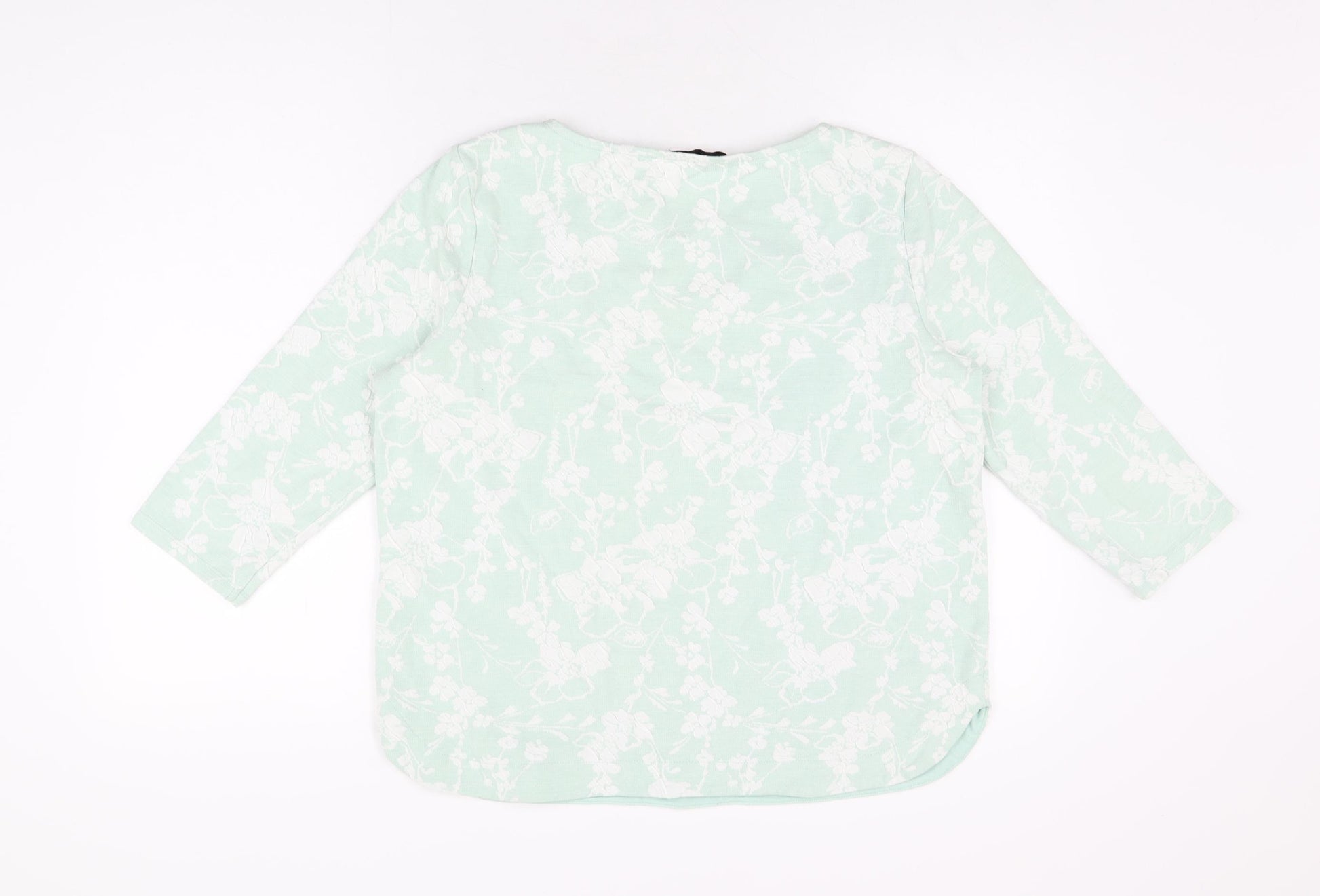 Womens Green Floral Polyester Basic T-Shirt Size 14 Round Neck