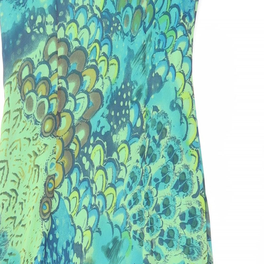 Womens Green Geometric Polyester Slip Dress Size 12 V-Neck Pullover