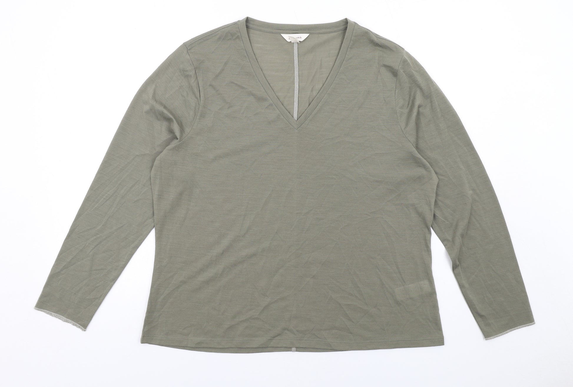 Marks and Spencer Women’s Green V-Neck Beaded Trim T-Shirt Size 18