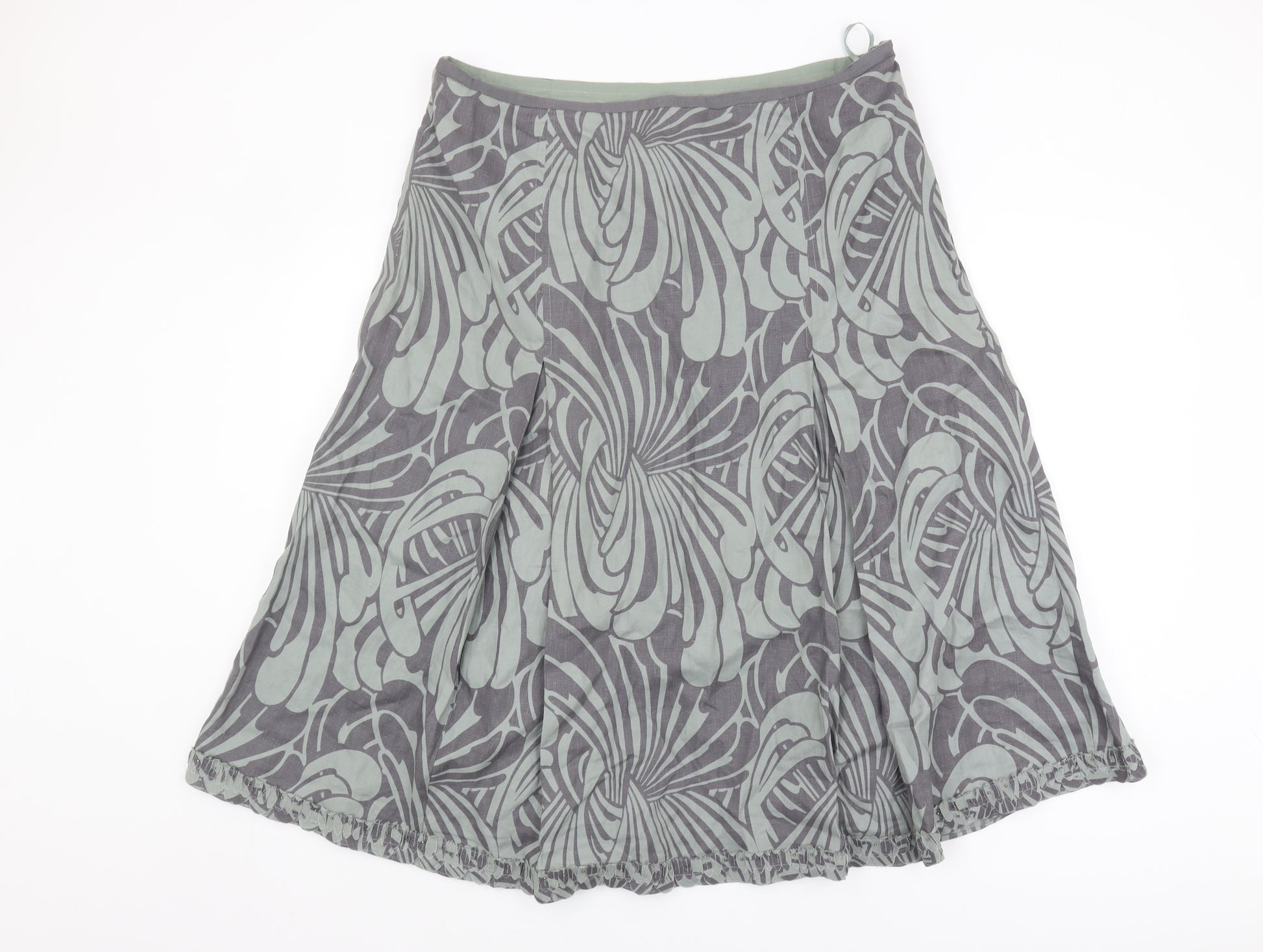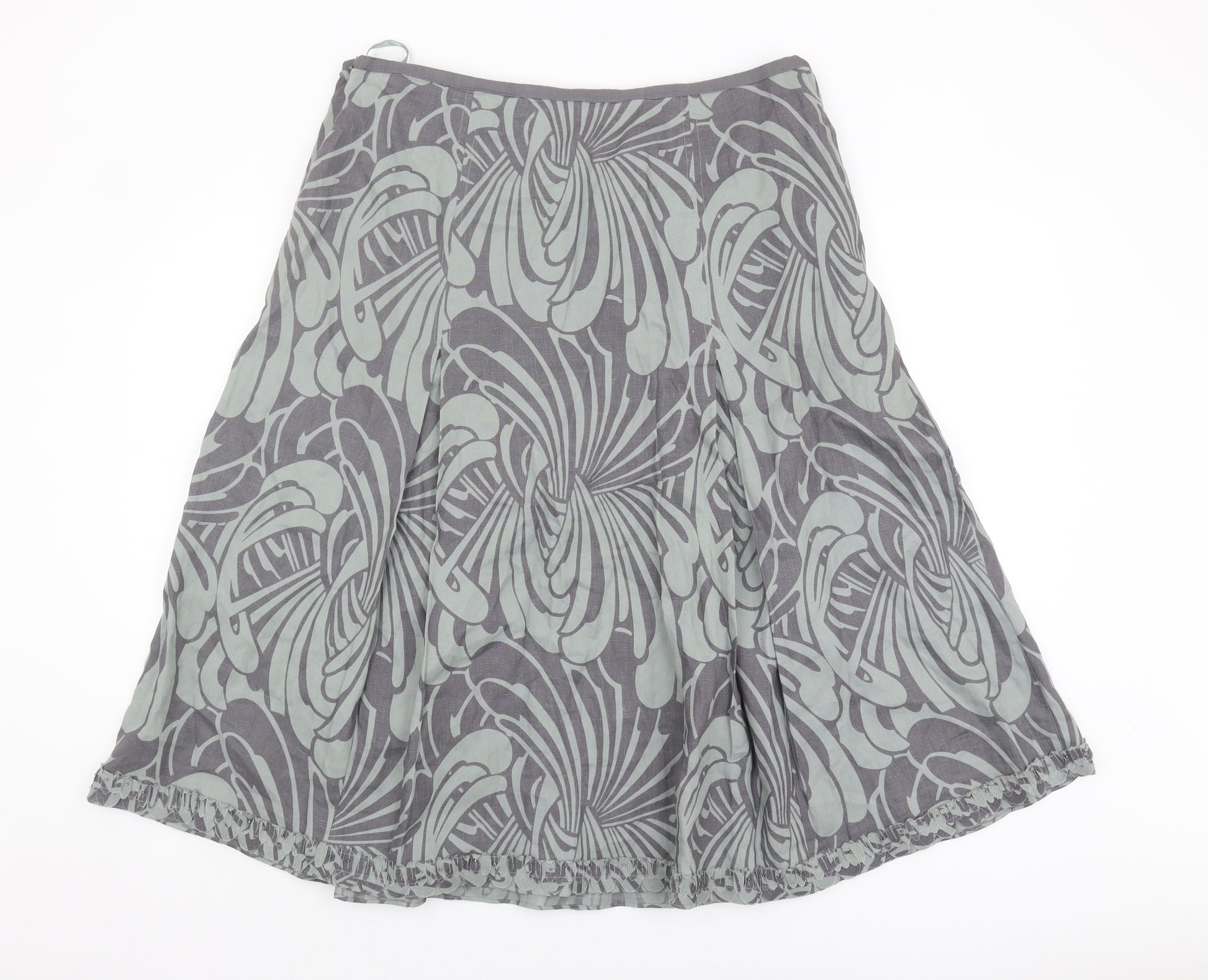 Elevate your wardrobe with this chic Per Una A-Line skirt in a versatile grey hue. This size 16 skirt, designed for women, features a contemporary geometric pattern that adds a touch of elegance to any ensemble. Crafted from 100% flax (linen), it offers a breathable and comfortable fit, perfect for year-round wear. The quality craftsmanship ensures durability while maintaining a flattering silhouette. Easy to pair with various tops and shoes, this skirt is a versatile addition to your collection. Though previously owned, it remains in excellent condition with no visible flaws, making it a stylish and economical choice for those seeking a sophisticated and modern look. Whether for a casual day out or a more polished event, this Per Una skirt will effortlessly enhance your style.