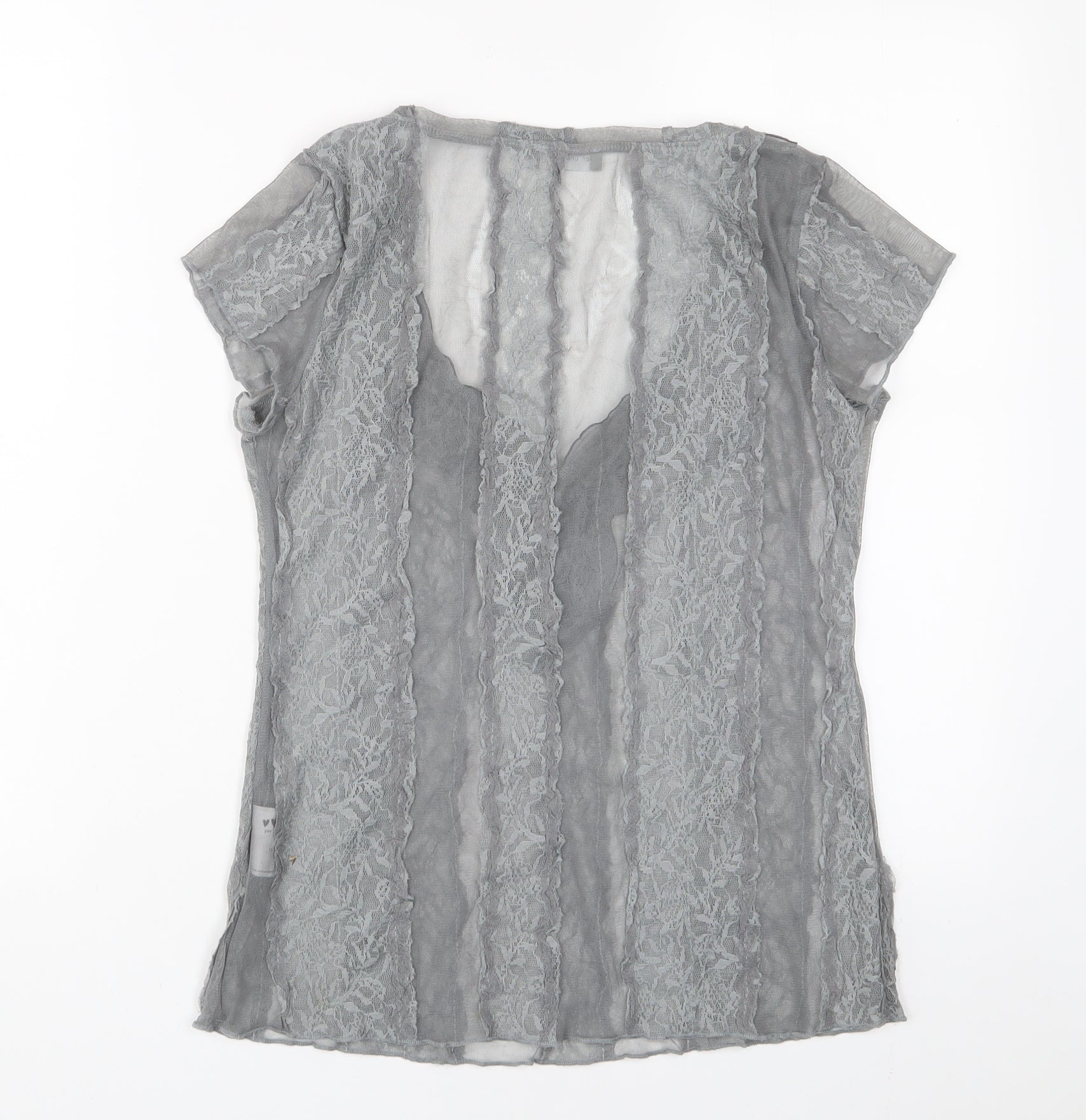 Womens Grey Polyester Basic T-Shirt Size 10 V-Neck - Lace, Embroidered, Sequins