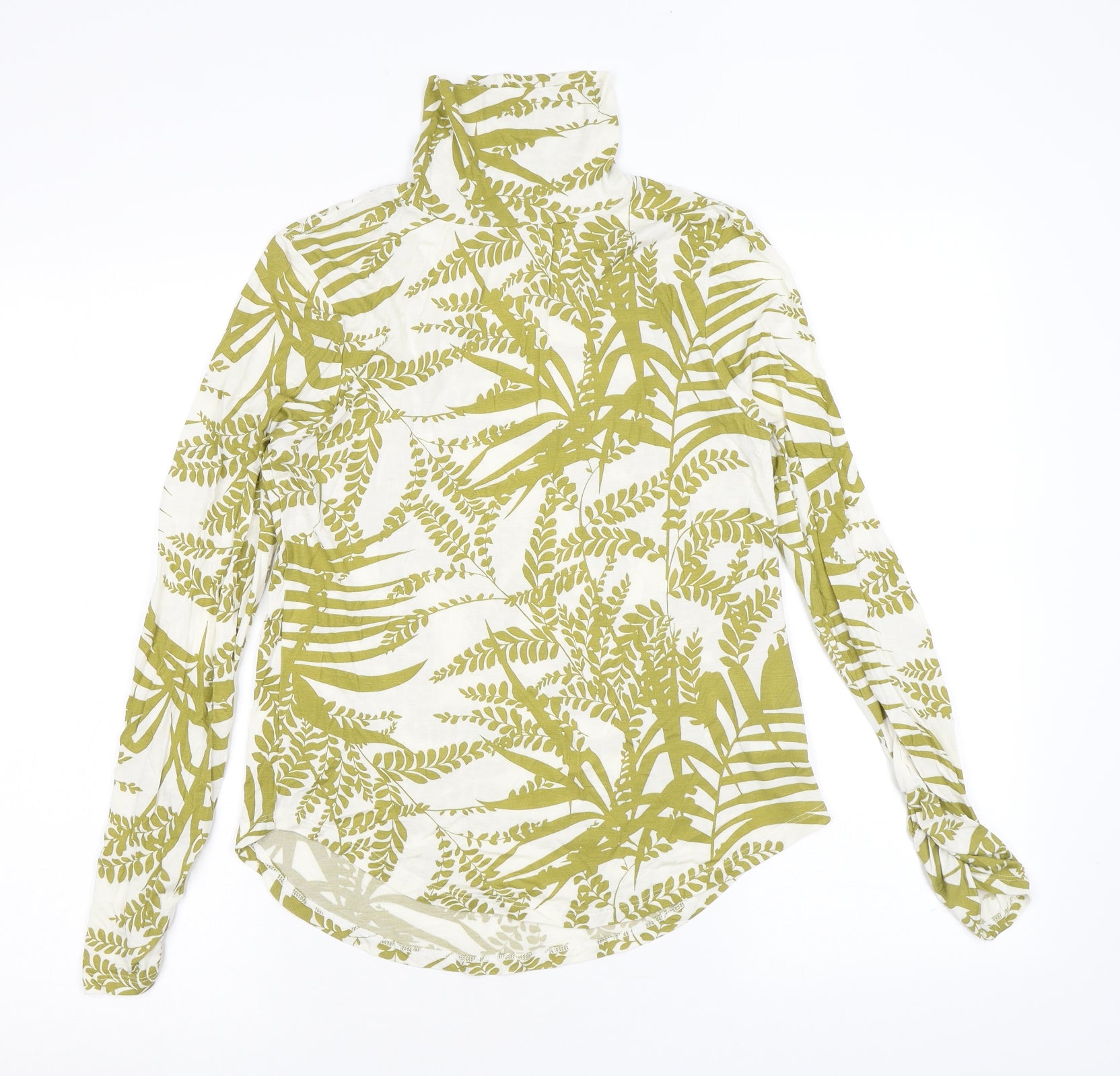 Womens Ivory Geometric Modal Basic T-Shirt Size 12 High Neck - Leaf Print