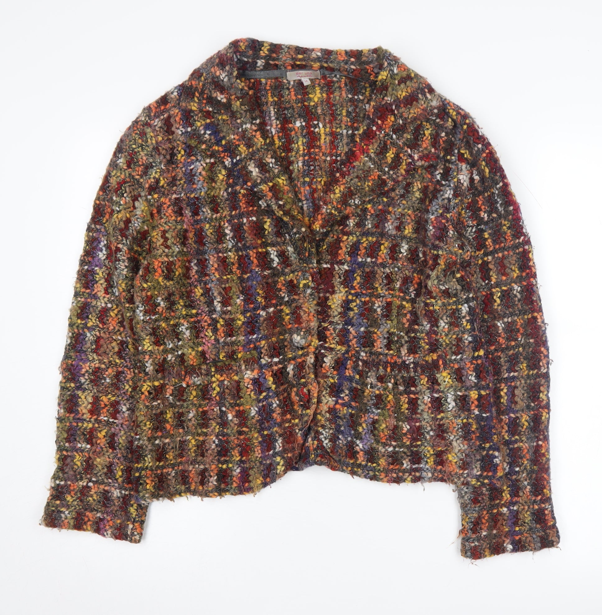 Discover the perfect blend of comfort and style with this Per Una Women's Multicoloured Cardigan, an essential piece for your autumn and winter wardrobe. Crafted in Italy, this chic cardigan showcases a classic collared neckline and a vibrant check pattern, designed to add a pop of colour to your ensemble. Its long sleeves and chunky-knit style make it perfect for layering on colder days. Made from a quality wool blend, this cardigan ensures warmth while offering a touch of luxury. Pair it easily with your favourite casual outfits for a look that is both relaxed and sophisticated. Slight pilling is visible, yet it remains in excellent condition. Ideal for casual occasions, this piece is both versatile and timeless.