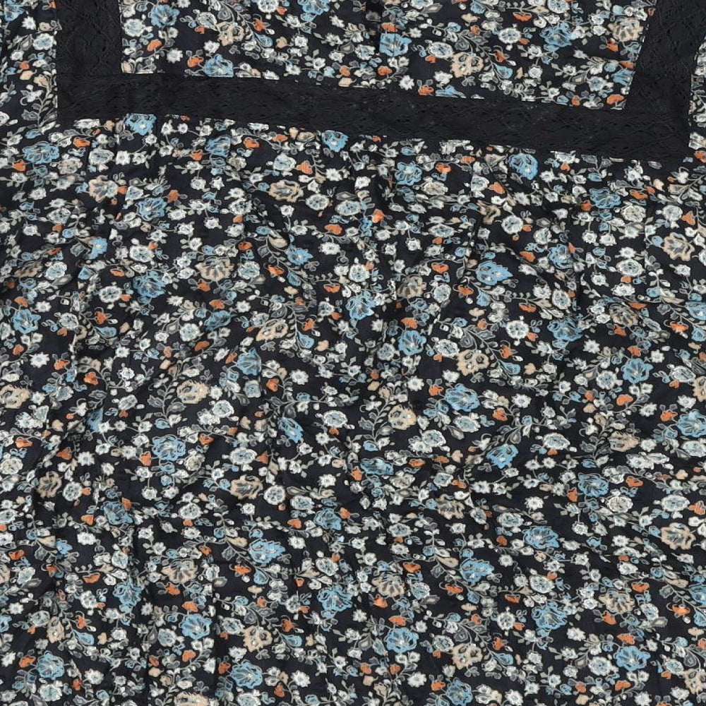 Womens Multicoloured Floral Cotton Basic Blouse Size 14 Round Neck - Lace Detail