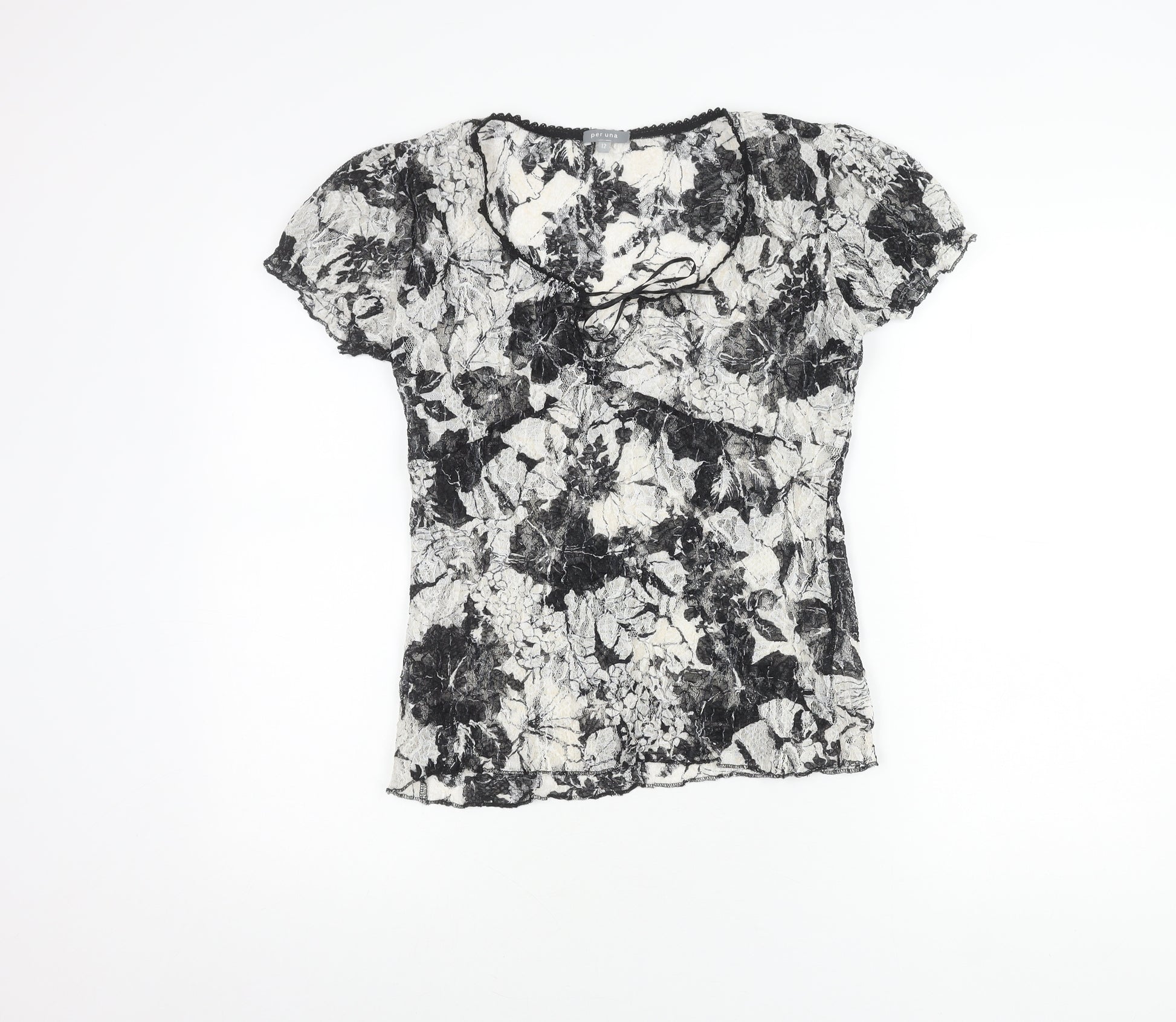 Upgrade your wardrobe with this elegant Per Una women's blouse. Featuring a sophisticated multicoloured floral pattern on delicate lace fabric, this blouse exudes femininity and style. Perfect for a range of occasions, its short sleeves and regular size fit make it an attractive choice for any woman. The blouse is made from a blend of polyamide and polyester, ensuring a comfortable and durable wear. With its excellent condition and slight wear marks that enhance its chic appeal, this blouse is machine washable and easy to care for. Ideal for pairing with skirts or trousers for a classic look, this Per Una blouse is a versatile addition to your collection.