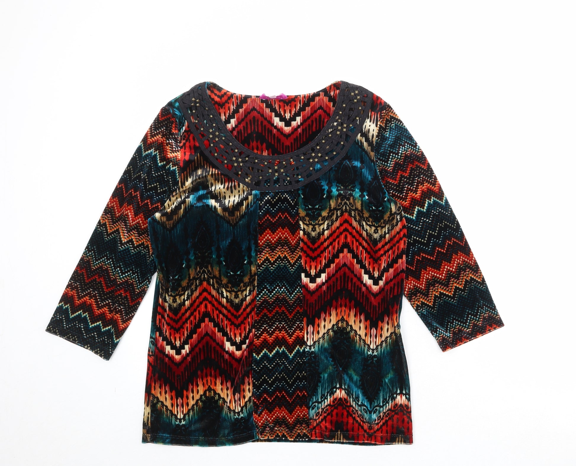 Womens Multicoloured Geometric Polyester Basic Blouse Size 14 Round Neck