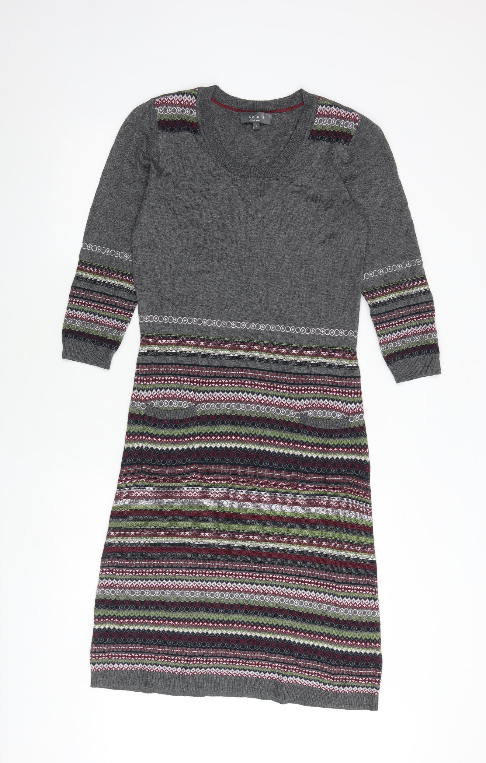 Womens Multicoloured Geometric Viscose Jumper Dress Size 8 Round Neck Pullover