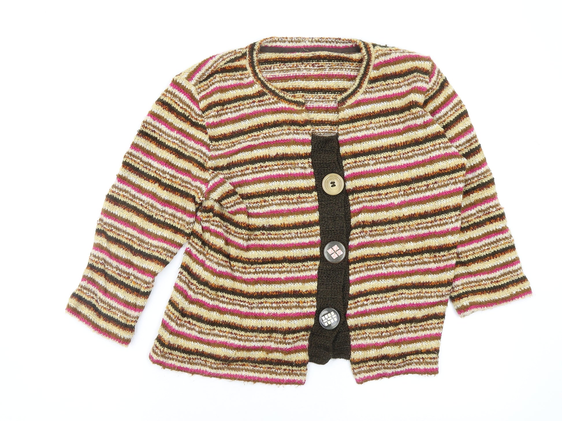 Womens Multicoloured Striped Cardigan Jumper Size 14