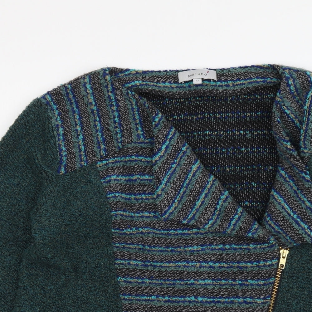 Womens Multicoloured V-Neck Geometric Acrylic Full Zip Jumper Size M