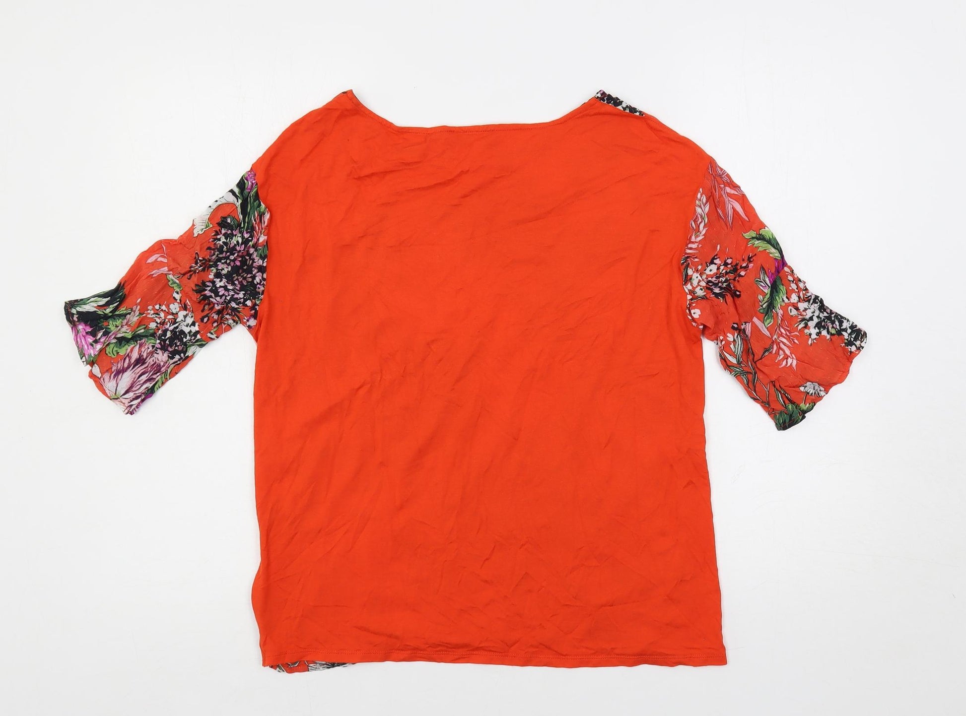 Womens Orange Floral Viscose Basic Blouse Size 12 Boat Neck