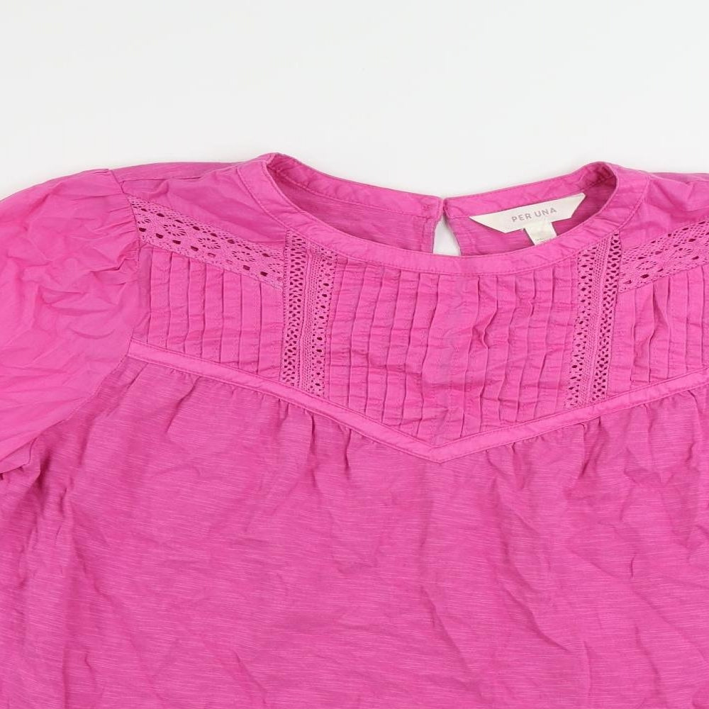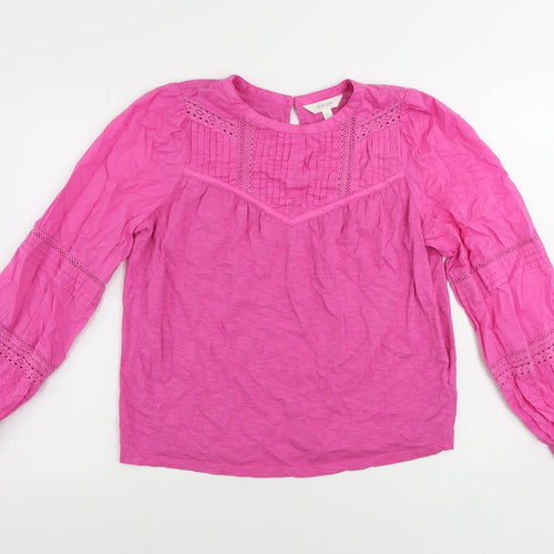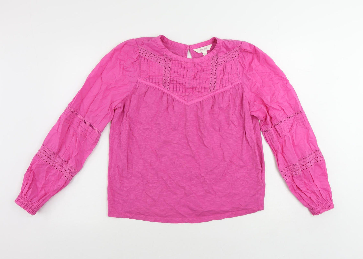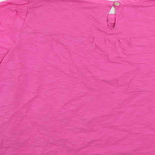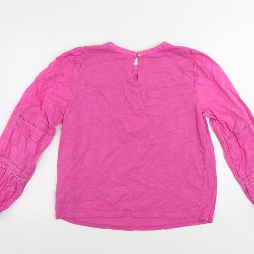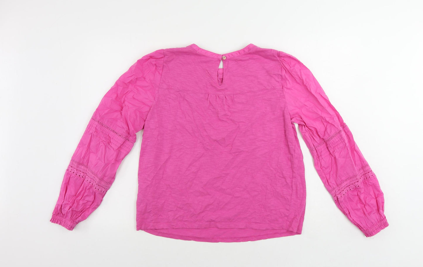 Womens Pink Cotton Basic Blouse Size 12 Round Neck - Lace Detail