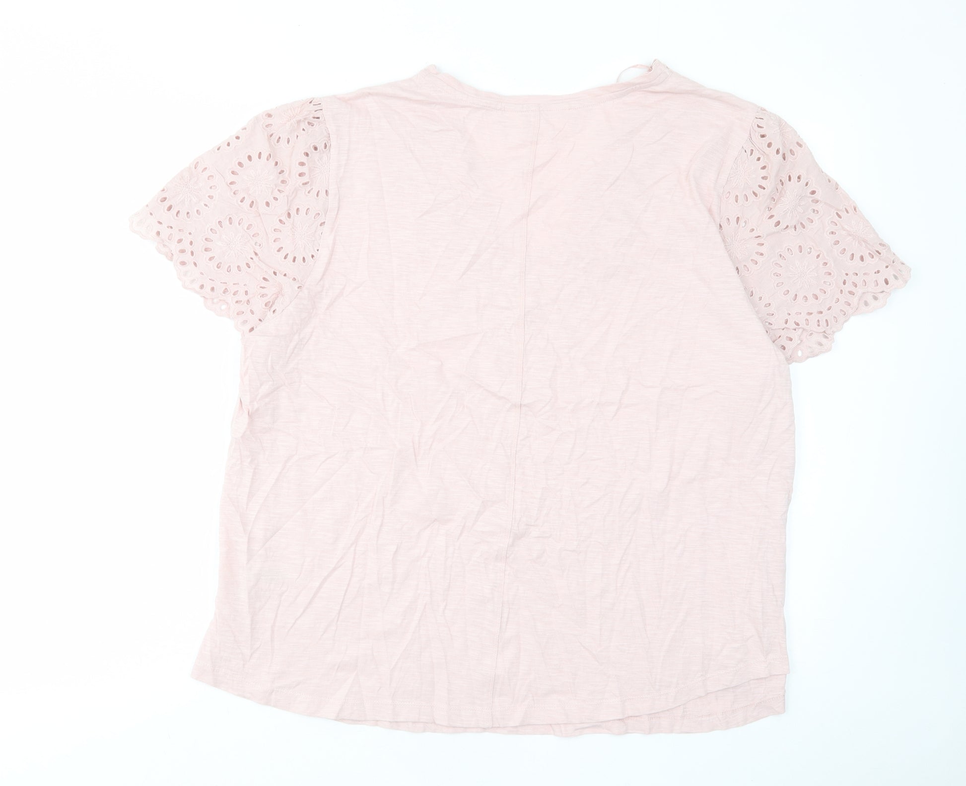 Womens Pink Cotton Basic T-Shirt Size 22 V-Neck - Embroided