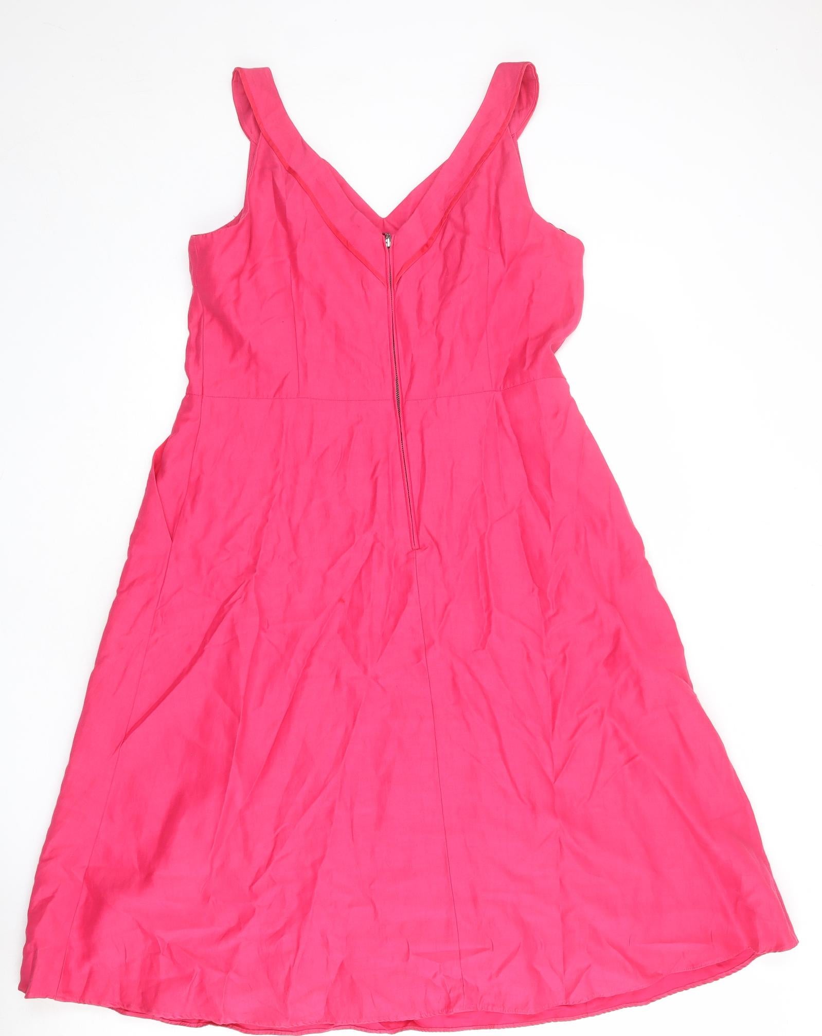 Womens Pink Polyester A-Line Size 16 V-Neck Zip