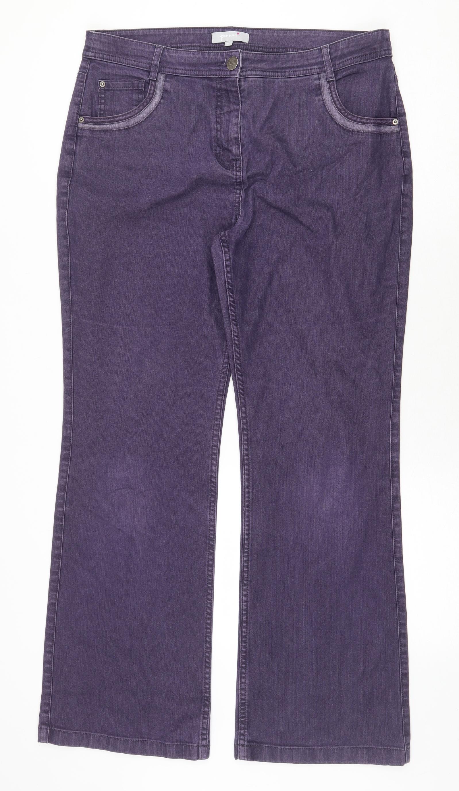 Womens Purple Cotton Bootcut Jeans Size 14 Regular Zip