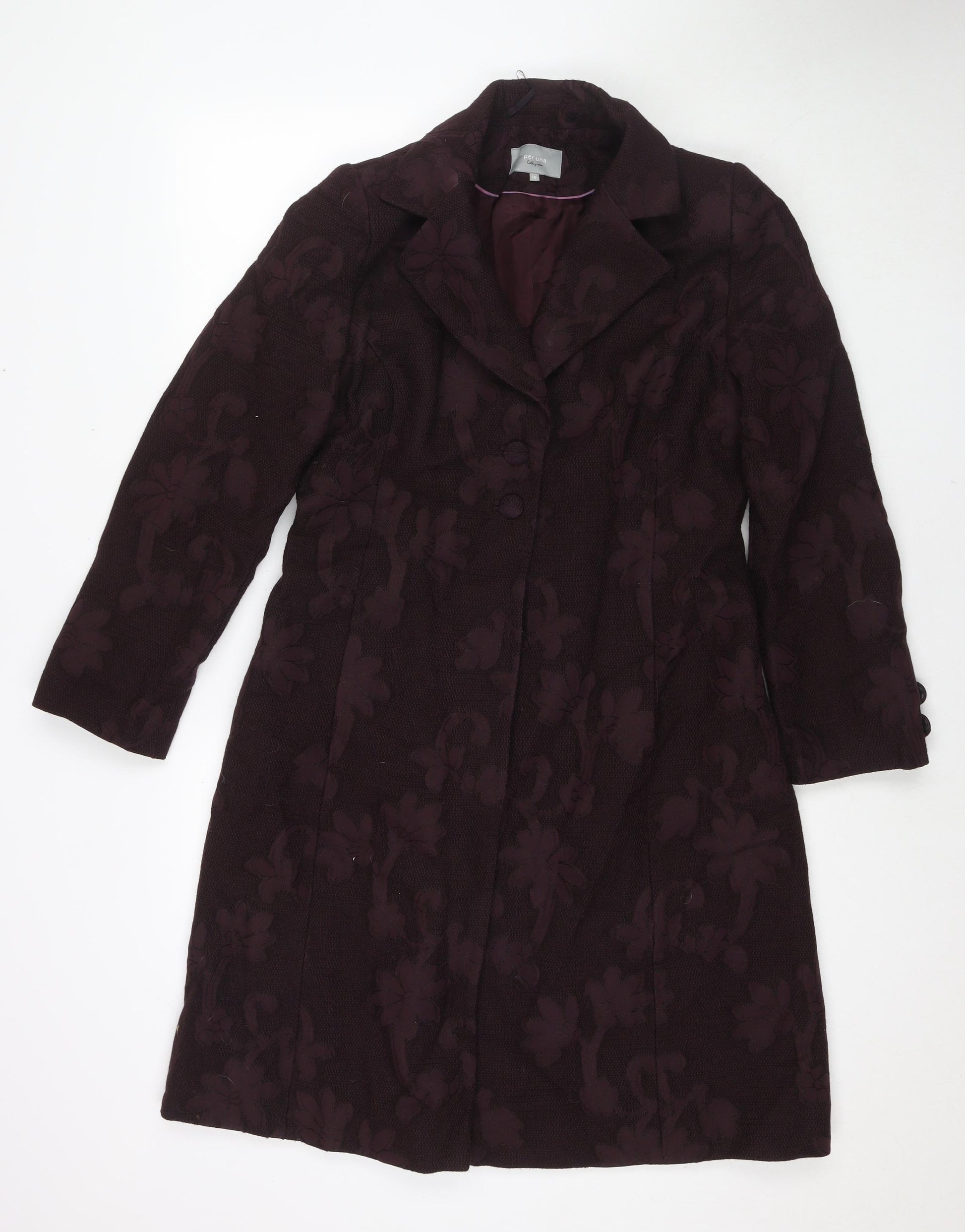 Womens Purple Floral Overcoat Coat Size 16 Button