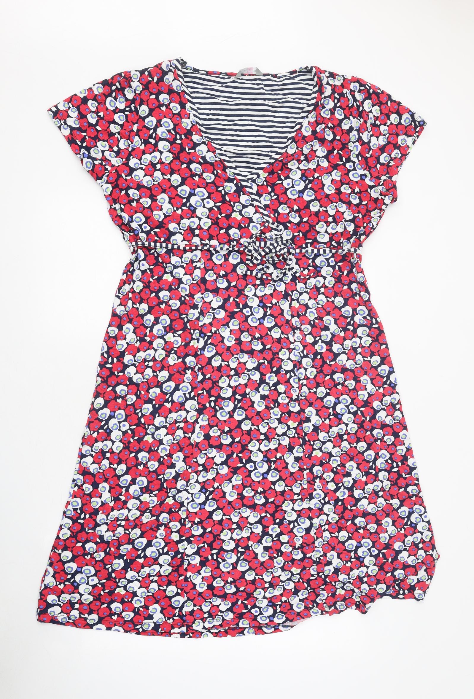 Womens Red Floral Polyester Fit & Flare Size 18 V-Neck Tie