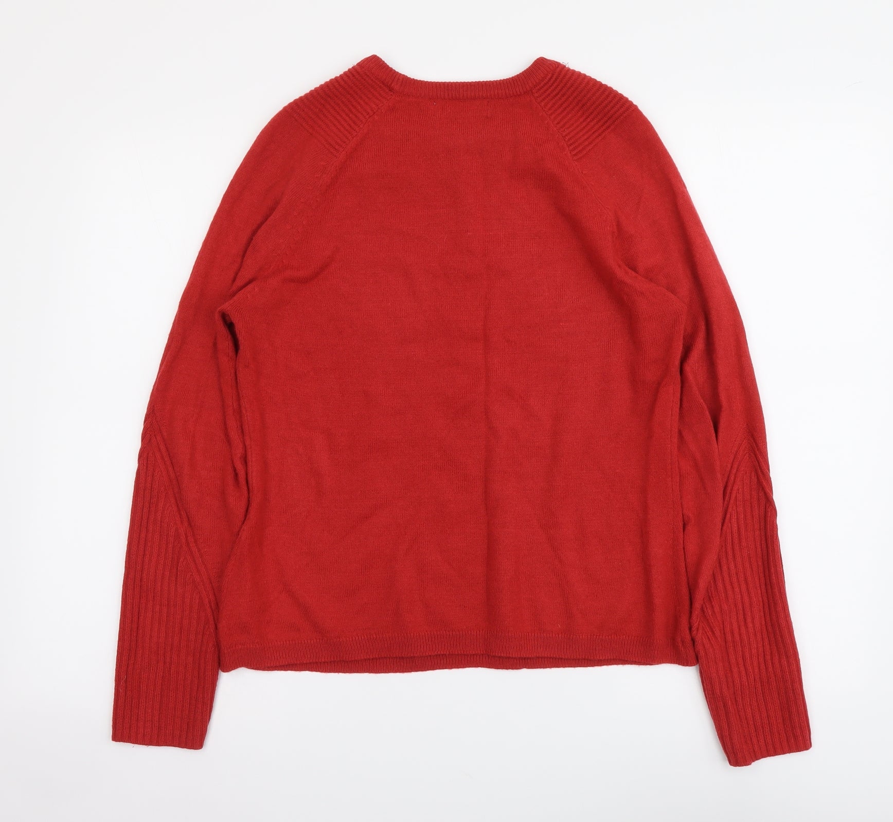 Womens Red Round Neck Acrylic Pullover Jumper Size 10