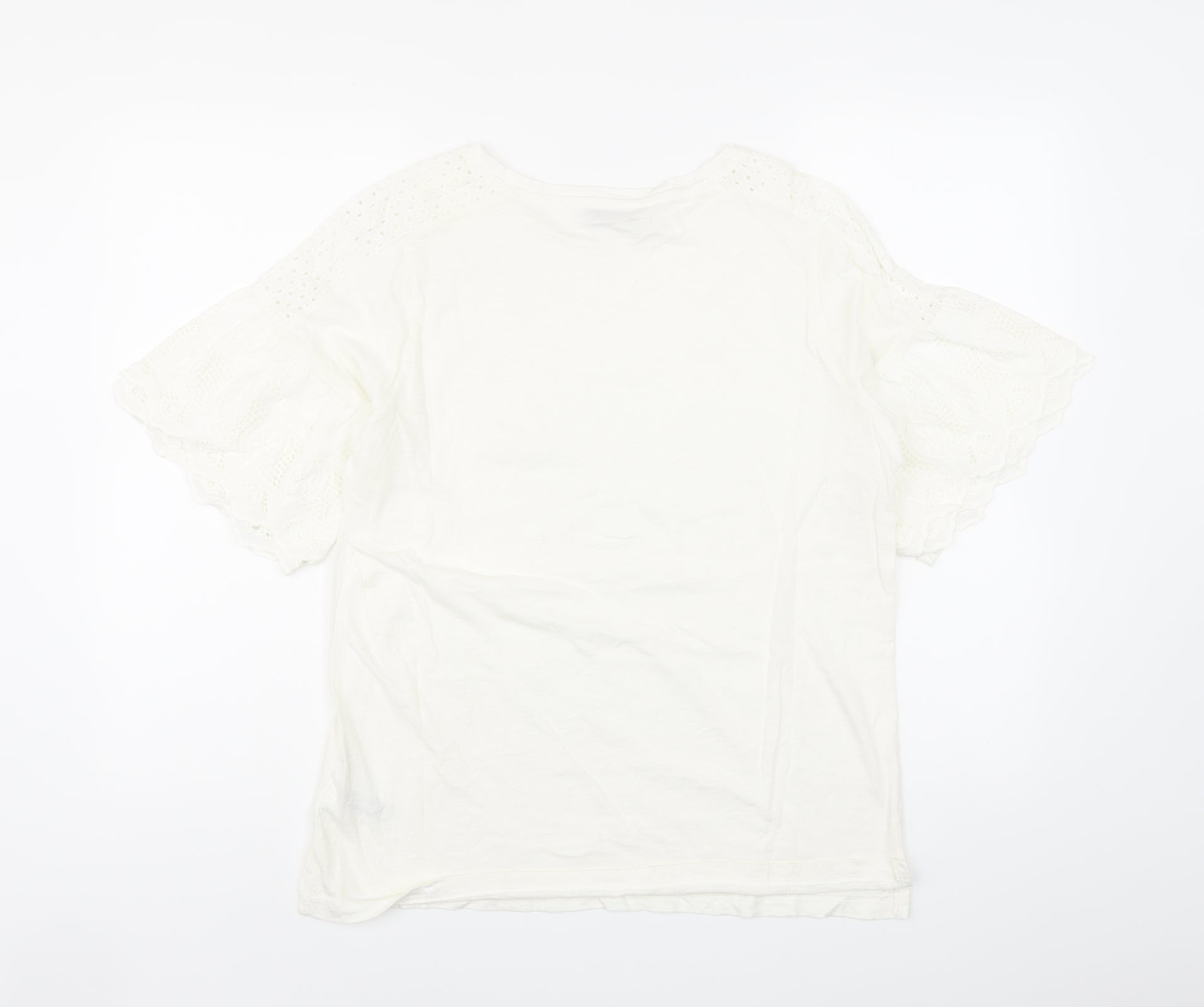 Womens White 100% Cotton Basic T-Shirt Size 14 Round Neck