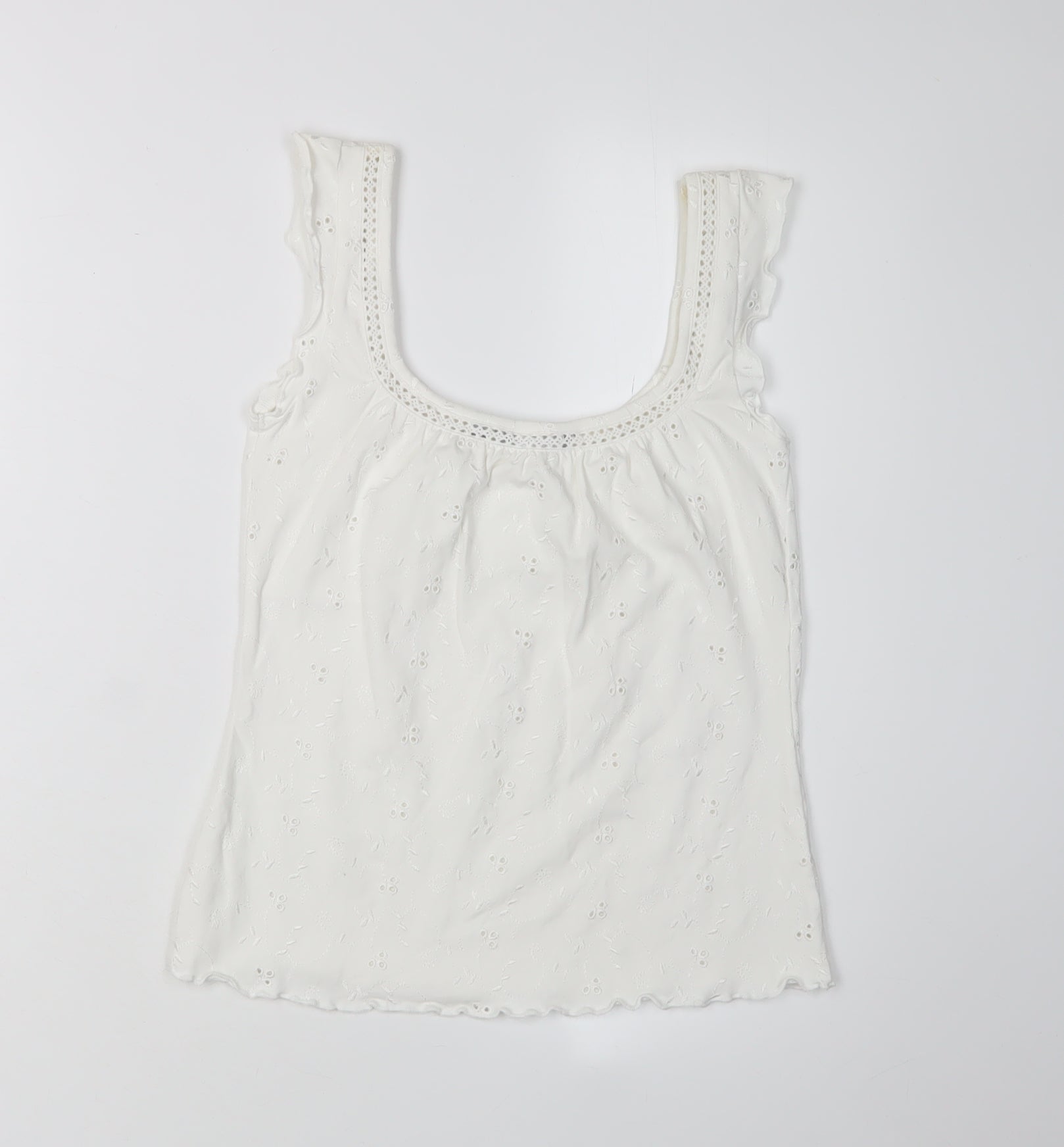 Add a touch of elegance to your wardrobe with this stylish Per Una camisole tank top. Crafted from 100% cotton, this top is both breathable and lightweight, making it ideal for spring and summer. The soothing white colour, paired with delicate crochet accents and subtle buttons, offers a charming, casual feel. The camisole style, featuring a flattering scoop neckline and wide straps, provides both comfort and a chic look. Perfect for everyday wear, this top effortlessly complements your favourite jeans or skirt, providing a versatile staple for any casual occasion. In excellent condition, it shows no visible defects, ensuring a fresh addition to your collection. Choose this delightful Per Una piece to enhance your seasonal wardrobe now.