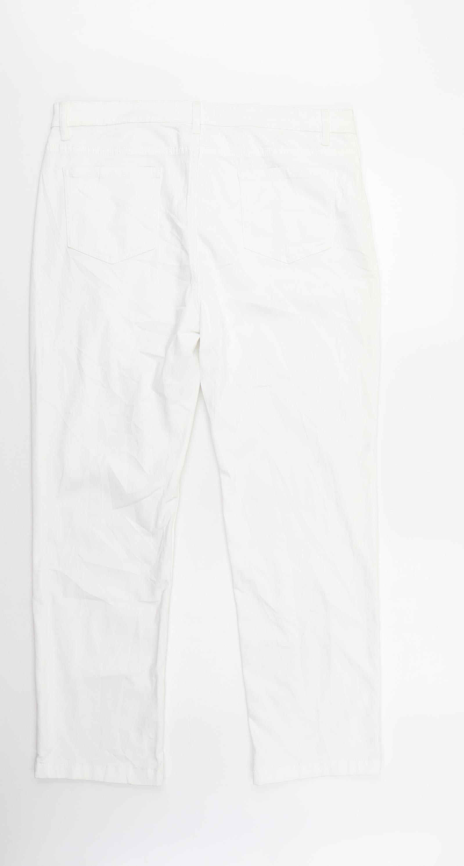 Womens White Cotton Straight Jeans Size 16 L29 in Regular Button