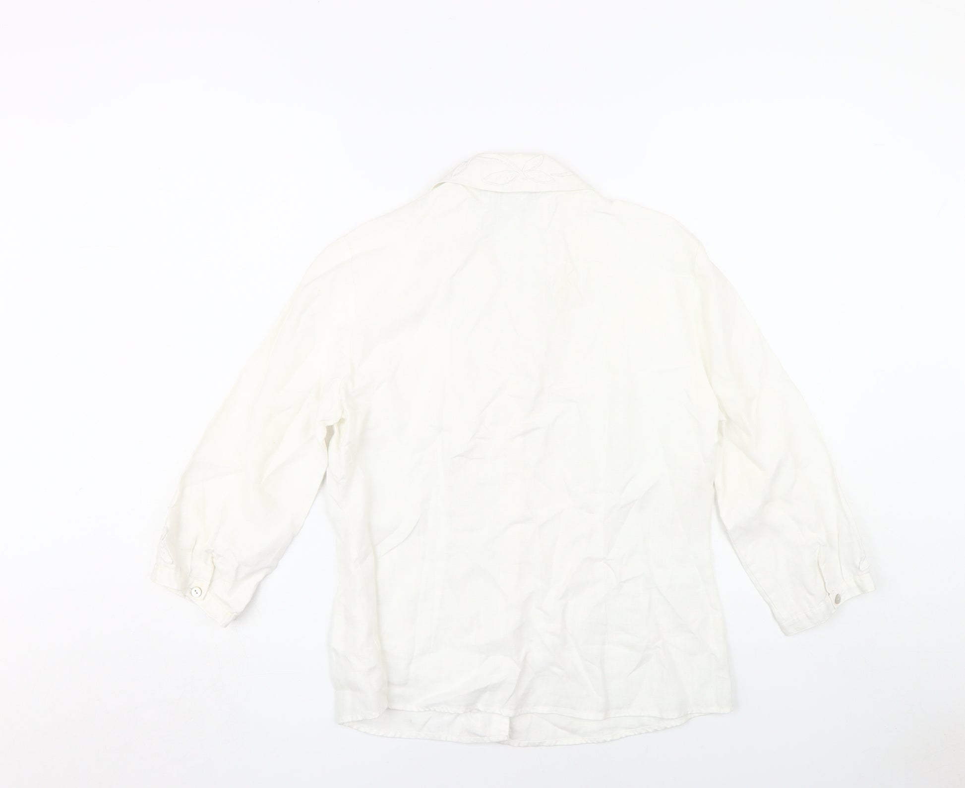 Women's White Embroidered Button-Up Shirt Size 12