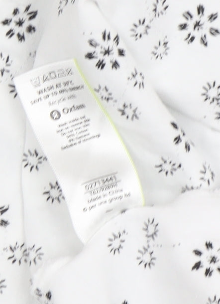 Embrace a touch of elegance with this Per Una Women's White Floral Tank Top, perfect for adding a stylish flair to your summer wardrobe. This size 12 top boasts an exquisite floral pattern against a crisp white backdrop, making it ideal for casual outings or relaxing at home. Crafted from 100% cotton, it's breathable and comfortable, providing the perfect fit for those warm, sunny days. The sleeveless design and scoop neckline offer a classic look, while the wide straps ensure a comfortable fit. Made by Per Una, a brand synonymous with quality and style, this top is a testament to refined simplicity. The fabric is soft jersey, ensuring a smooth feel against your skin, and it's machine washable for easy care. In excellent condition, this top looks almost brand new, showing very minimal wear. Whether paired with jeans or a skirt, this floral tank is versatile and effortlessly chic. Add this piece to your collection for a relaxed yet polished look that will turn heads and evoke compliments wherever you go. Feel confident and classy without compromising on comfort with this must-have summer essential!