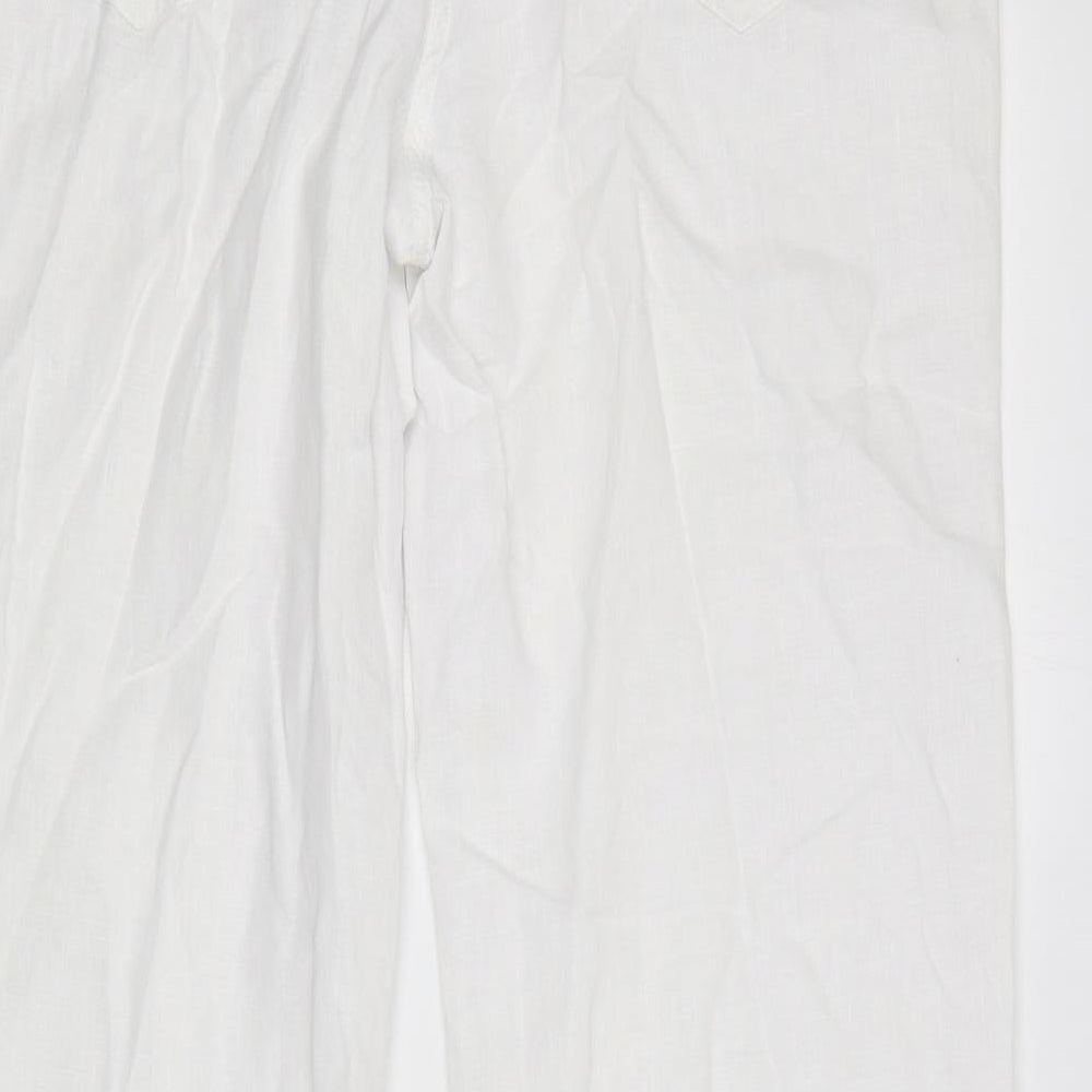 Womens White Linen Trousers Size 14 L32 in Regular Button