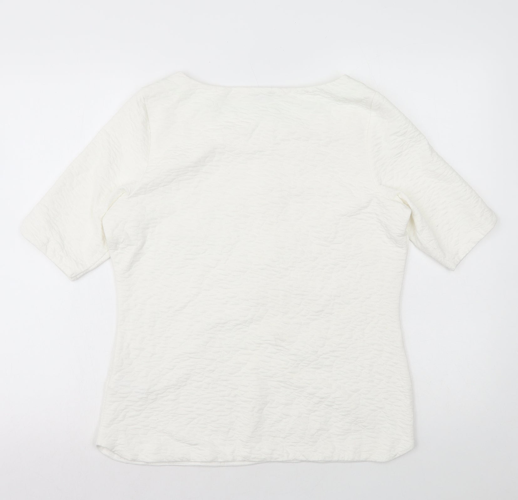 Womens White Polyester Basic T-Shirt Size 12 Boat Neck