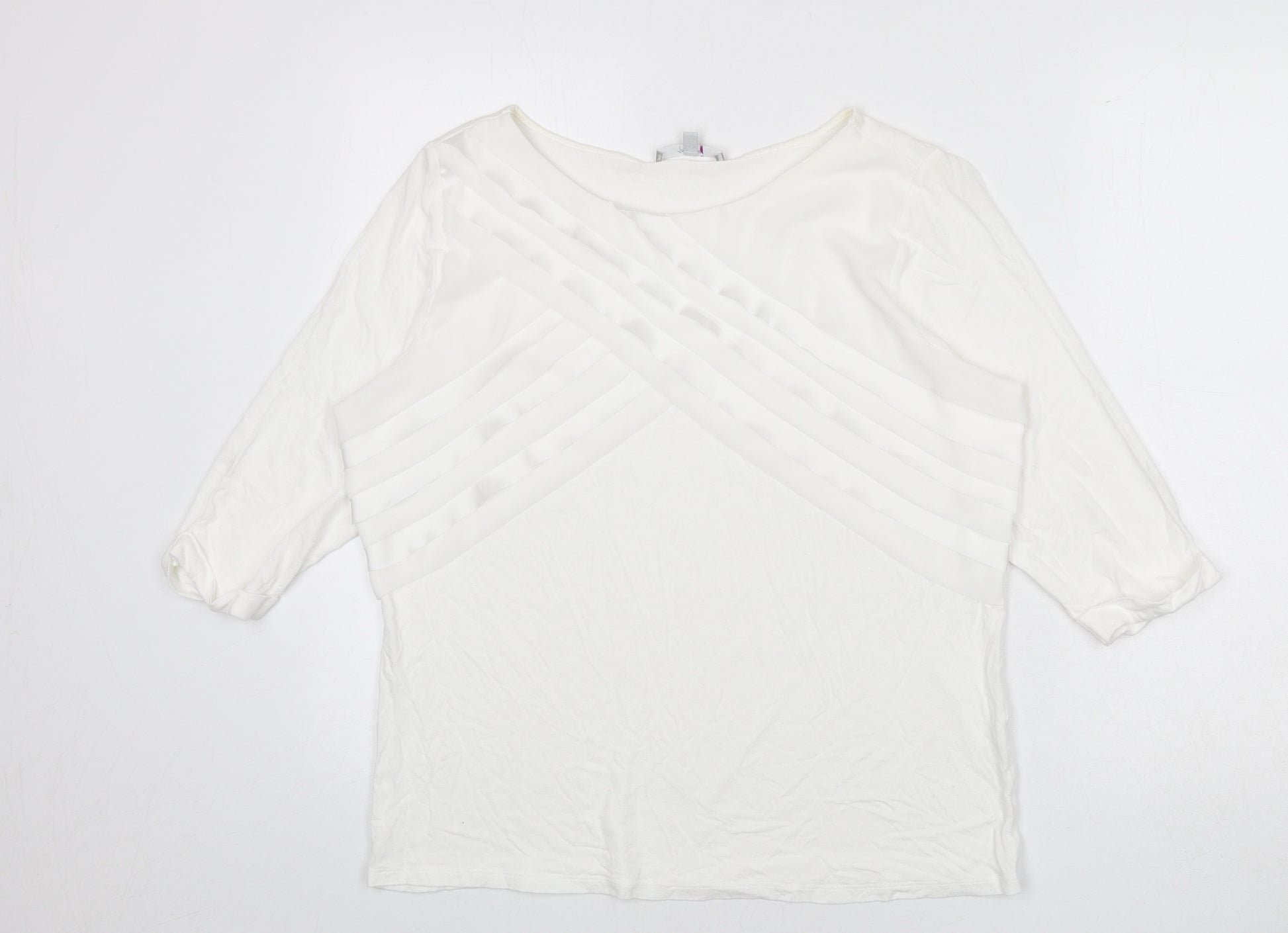 Womens White Polyester Basic T-Shirt Size 16 Round Neck - Ruffle Detail