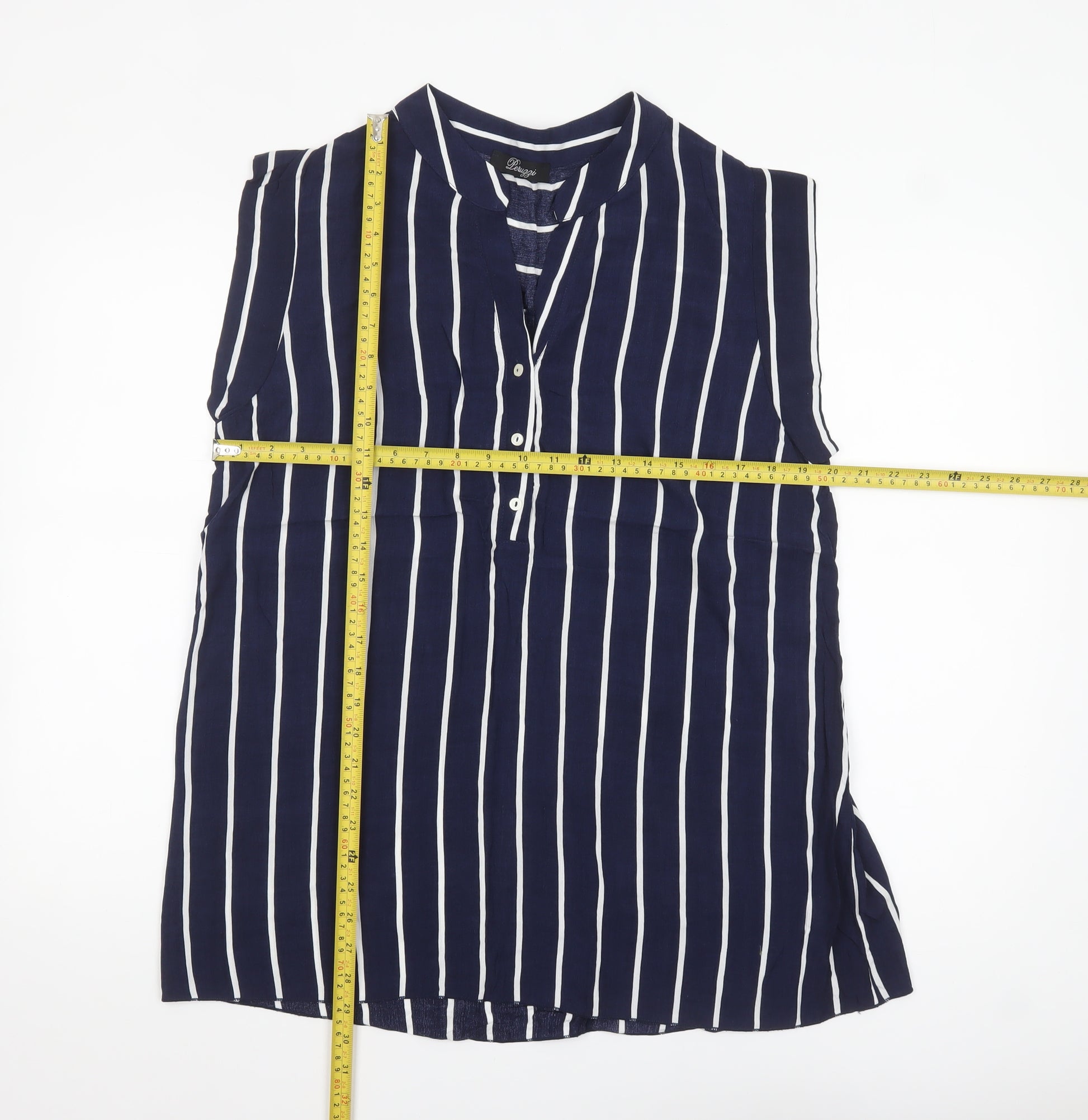 Women's Blue Striped Sleeveless Tunic Blouse Size 14