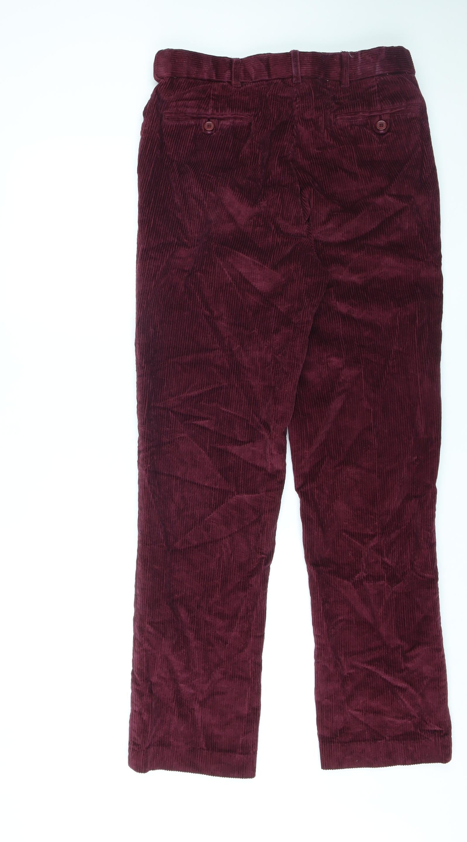 Mens Purple Cotton Trousers Size 34 in L33 in Regular Zip