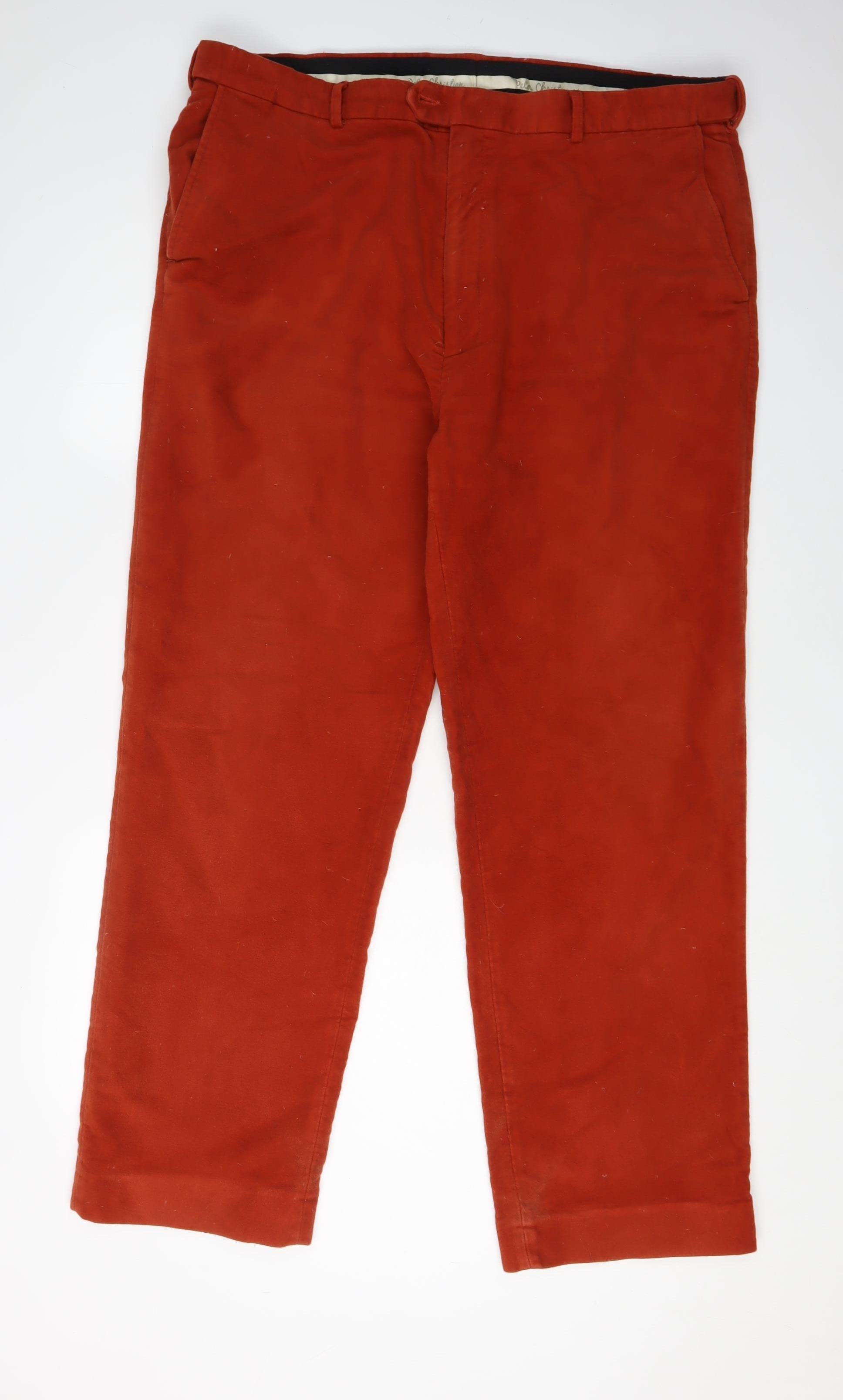 Discover sartorial elegance with these Peter Christian men’s trousers in a striking red. Crafted from 100% cotton, these trousers promise both comfort and breathability, making them an ideal addition to your wardrobe. With a waist size of 44 inches and a 34-inch inside leg, they fit perfectly for those seeking a regular size fit. The flat front design offers a streamlined look, while a single button accent adds a touch of detail, ensuring you stand out in any occasion, be it casual or semi-formal. These trousers are in excellent condition, with only minor lint present, reflecting their cared-for nature. Given their vibrant red hue, they pair effortlessly with a variety of tops—from crisp white shirts to relaxed tees. Whether for a day at the office or a social gathering, these trousers are versatile and stylish, ensuring you remain comfortable and sophisticated throughout. Additionally, the machine washable feature makes them convenient for regular use. Priced at £22.75, they offer an affordable yet chic solution for the modern man. Enhance your style with Peter Christian’s renowned quality and timeless design—these trousers will surely become a staple in your collection.