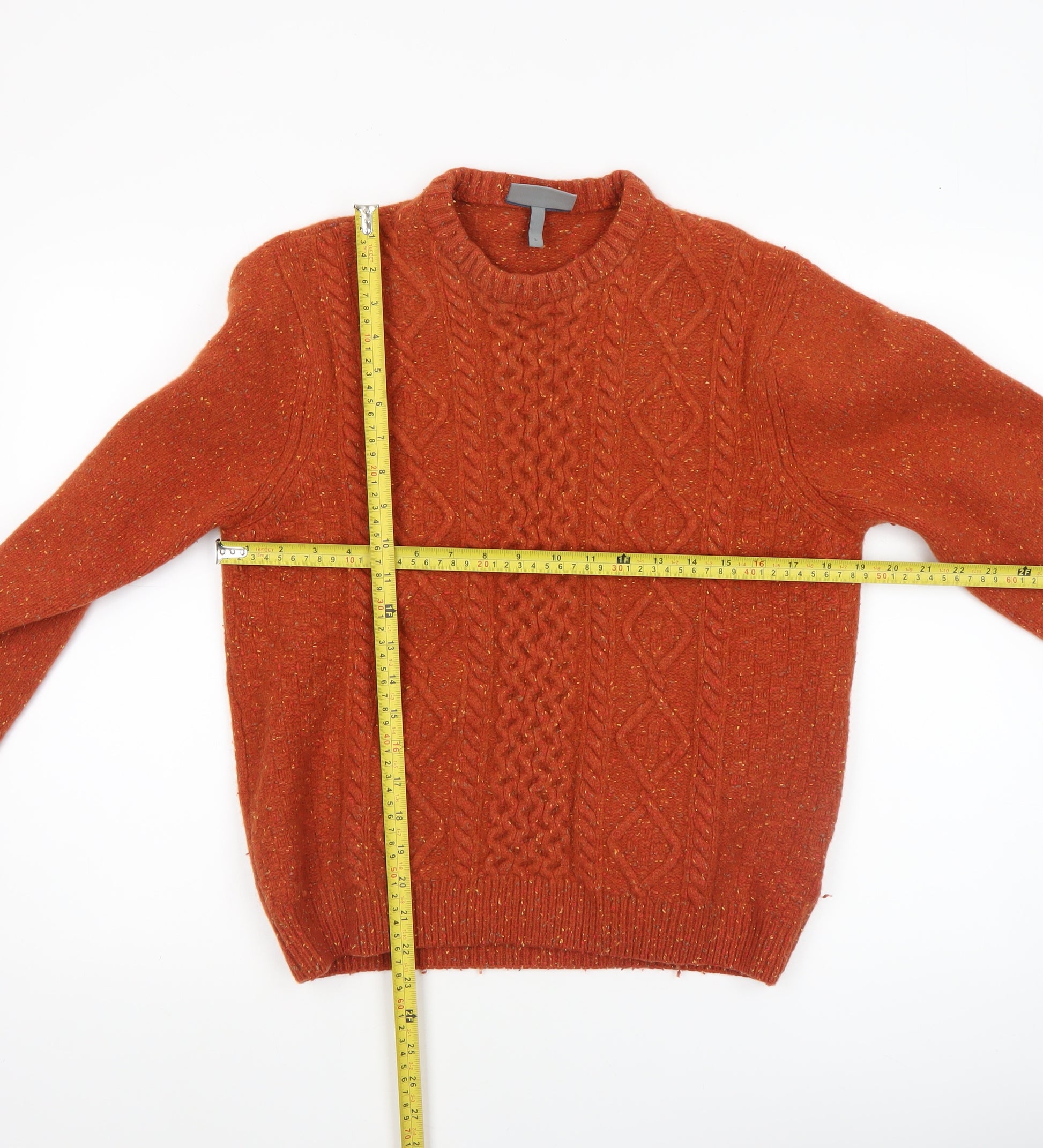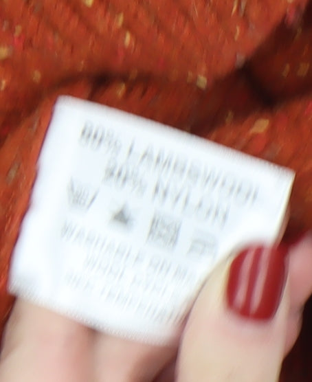 Women's Orange Lambswool Cable-Knit Jumper L
