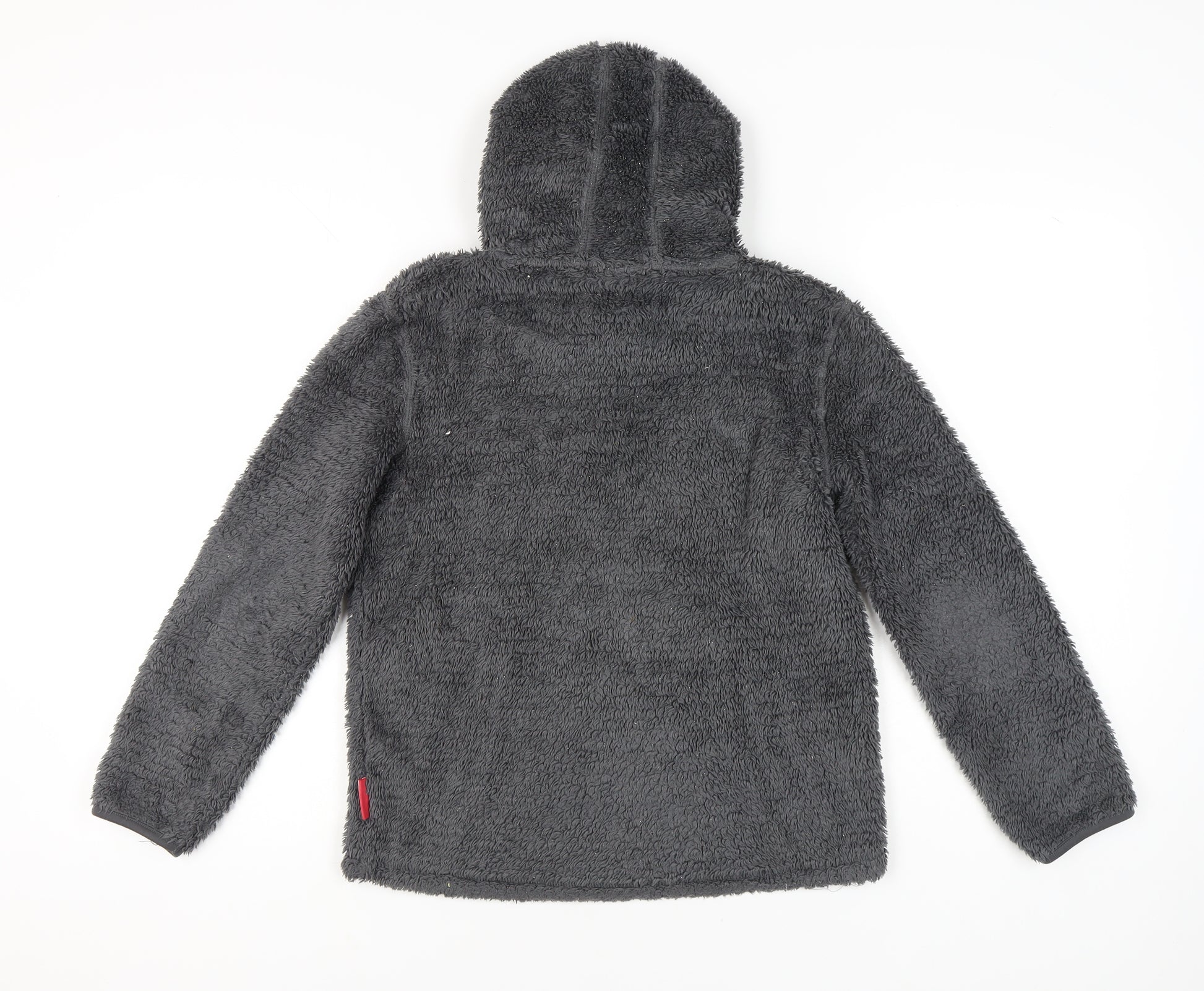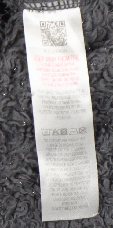 Stay warm and cosy with this Peter Storm Girls Grey Fleece Hoodie, perfect for everyday wear in cooler weather. Designed as a pullover hoodie, it features a soft fleece fabric that offers both comfort and warmth without being too heavy, making it ideal for layering during the autumn, spring, and winter months. The versatile grey colour allows this hoodie to be paired with a wide range of outfits, making it both practical and stylish for school, outdoor activities, or casual wear.Constructed from 100% polyester fleece, this hoodie is designed to be durable while providing a cosy, soft-touch feel against the skin. The regular fit ensures comfort and ease of movement, while the long sleeves and attached hood offer added warmth and protection from the chill. The convenient side pockets provide a space to keep little essentials secure or simply to keep hands warm.With a pullover style, this hoodie eliminates the fuss of zips or buttons, making it easy to put on and take off. Its machine-washable fabric ensures easy care and long-term wearability, perfect for active kids who need something low-maintenance yet long-lasting. The fleece construction is also lightweight, making it suitable for both layering and standalone use depending on the weather conditions.Ideal for school, outdoor adventures, hiking, or simply lounging in comfort, this Peter Storm hoodie is a wardrobe essential for kids who need reliable and stylish outerwear. The simple, no-pattern design offers timeless appeal, ensuring it remains a go-to favourite for years to come. With its excellent condition and premium quality fleece, this hoodie delivers fantastic value, making it a smart choice for parents looking for both functionality and style.Whether for casual use, active outdoor wear, or as an extra warm layer, this Peter Storm fleece hoodie is a dependable piece that combines practicality with comfort in one stylish package.