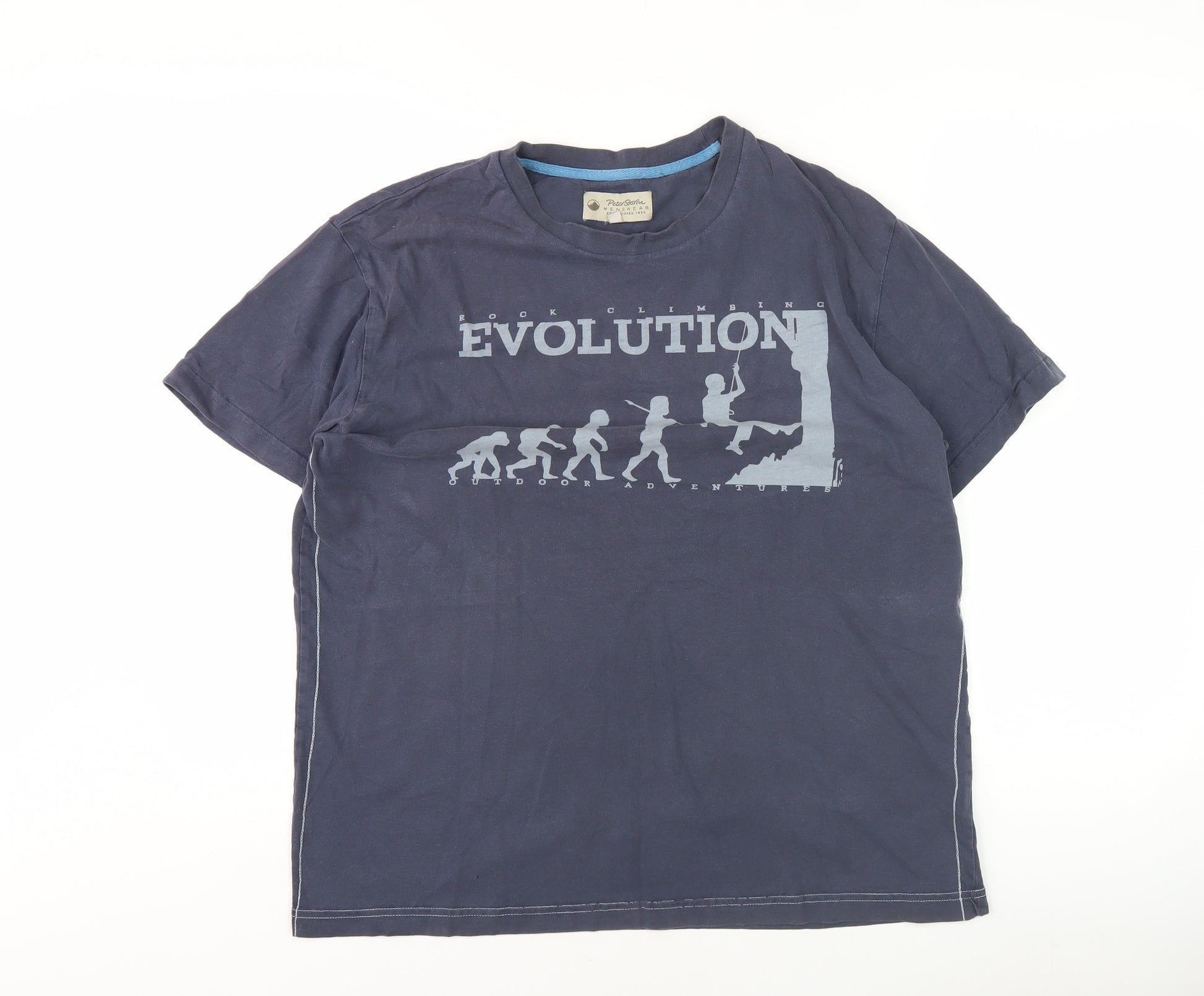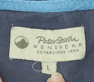 Embrace adventure with this Peter Storm Men's T-Shirt, showcasing a striking blue hue and a captivating graphic print depicting the evolution of rock climbing. Crafted from 100% cotton jersey, this T-shirt offers exceptional comfort and breathability, perfect for summer escapades. The classic crew neck design and short sleeves provide a relaxed yet stylish look, ideal for casual outings or adventurous trips. Featuring a logo accent, this shirt combines practicality with style, making it a versatile addition to any wardrobe. While it lacks original sales tags, its pristine condition assures durability and quality. Machine washable for easy care, this T-shirt is tailored for those who love the outdoors, blending comfort with a rugged charm. Whether you're scaling new heights or enjoying a laid-back day, this graphic tee promises to be your go-to choice, effortlessly merging fashion with functionality. Step into summer with confidence and style, knowing you have a piece of adventure ready to accompany you.