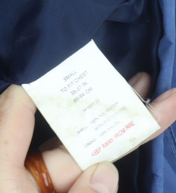 Introducing the Peter Storm Men's Waterproof Rain Jacket, the perfect companion for your outdoor adventures. Designed with the active individual in mind, this jacket is tailored to provide both style and functionality, ensuring you stay dry and comfortable no matter the weather. Crafted from durable polyester with a waterproof PVC coating, this jacket is engineered to resist rain and wind, making it ideal for hiking, walking, and other outdoor activities.Featuring a stand-up collar and mid-length design, this jacket offers excellent coverage without sacrificing style. The striking blue colour makes it a versatile piece that can be paired effortlessly with various outfits, ensuring you look fashionable while staying protected from the elements. The jacket's regular fit ensures a comfortable wear, with an adjustable zip and snap closure providing a secure seal against moisture.Hooded for added protection and equipped with convenient pockets, this jacket allows you to carry essentials with ease while keeping your hands warm. The logo accents add a touch of branding flair, distinguishing this piece as a quality Peter Storm creation. Suitable for casual, outdoor, or everyday wear, this jacket is machine washable for easy care, making it practical and adaptable for any wardrobe.Available in size S, this jacket fits a chest size of 35 inches (89 cm), providing a snug yet roomy fit suitable for layering. While exhibiting some minor dirt marks on its surface, the jacket remains in very good condition, ready to serve you on your next excursion. Combine functionality, comfort, and style with the Peter Storm Men's Waterproof Rain Jacket and conquer the outdoors in confidence.