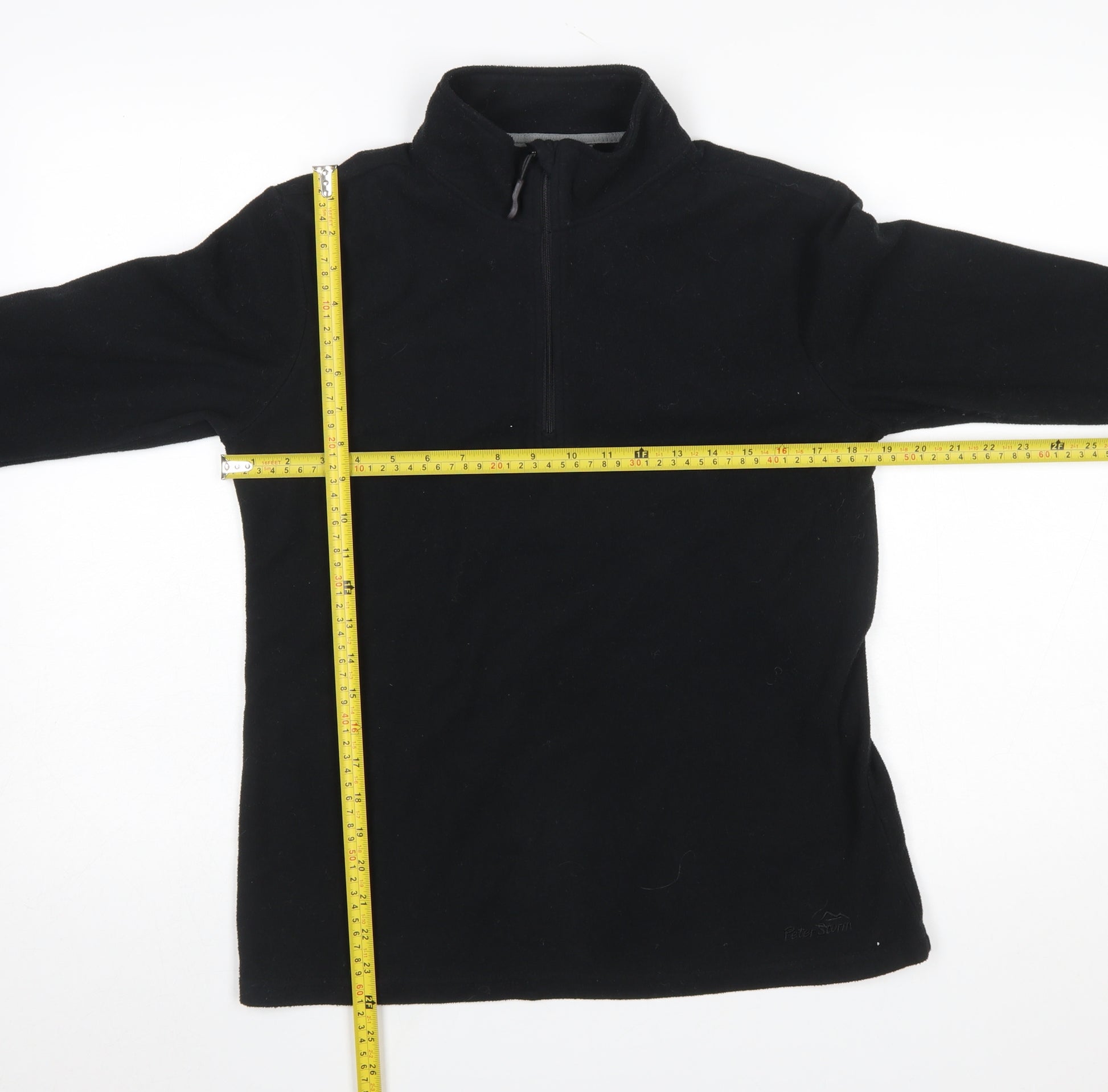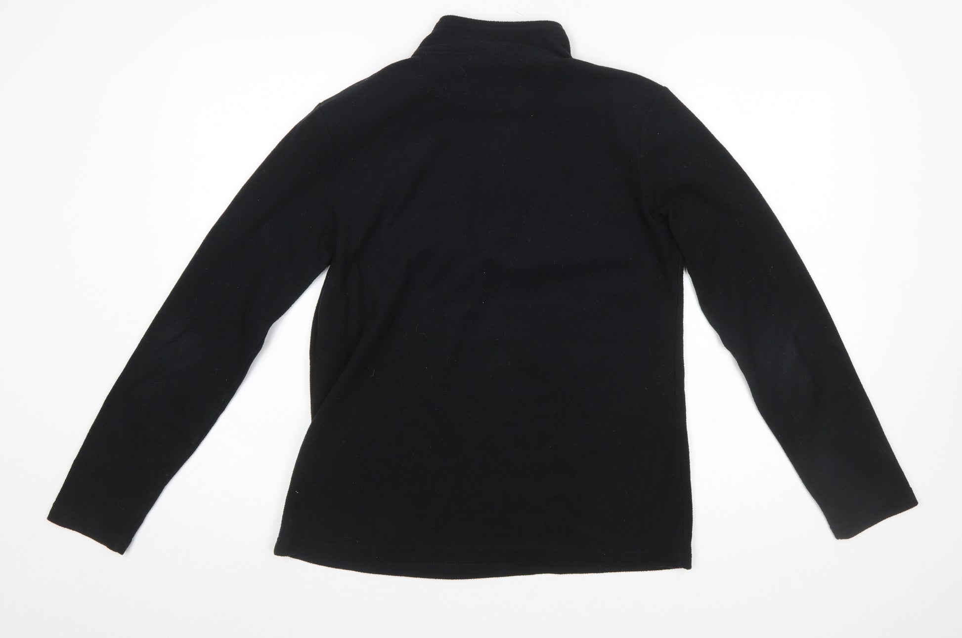 Stay warm and comfortable in this versatile Peter Storm Women's black fleece sweatshirt. Featuring a soft and lightweight 100% recycled polyester fleece fabric, this pullover offers warmth without bulk, perfect for layering throughout the cooler seasons. The fleece material ensures breathability and durability, making it an ideal choice for outdoor adventures and casual wear alike. Designed with a practical 1/2 zip neckline, it allows for easy ventilation and adjustable coverage to suit your comfort level, while the high neck helps retain warmth on windy days. Its classic long-sleeve and regular fit cut provide relaxed comfort and flexibility for movement, making it suitable for a wide range of activities — from hiking and walking to travelling or lounging at home. This fleece is finished in a timeless solid black shade, allowing for easy pairing with other wardrobe pieces and maintaining a sleek, minimalist look. The midweight construction provides enough insulation for autumn and winter, while still being light enough for layering in spring. As an eco-conscious choice with its 100% recycled polyester fabric, this garment combines sustainability with performance. Machine washable for effortless care, it’s a practical addition to your casual and active wardrobe. In excellent pre-owned condition, this pullover shows only minimal signs of gentle wear, with no stains, tears, or damage detected. Perfect for everyday wear or outdoor adventures, the Peter Storm Women's Black Fleece 1/2 Zip Pullover is a reliable essential that blends comfort, warmth, and style in one simple design. Whether worn under a jacket for added warmth or on its own for chilly mornings, it delivers lasting comfort and effortless versatility for all seasons.