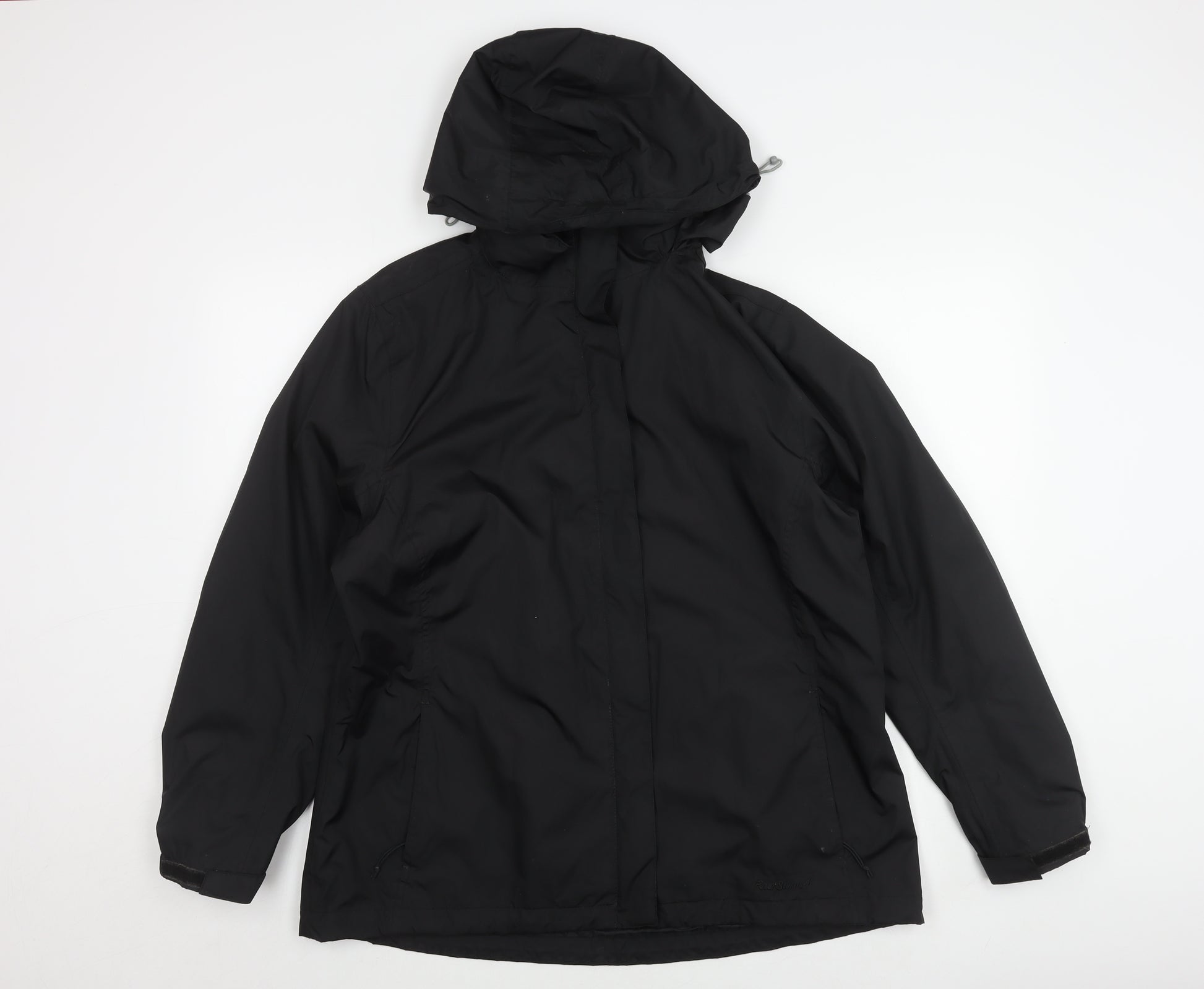 Stay dry and stylish with this Peter Storm women's rain jacket in classic black. Crafted for the unpredictable British weather, this waterproof and windproof jacket is your go-to outerwear for those blustery and rainy days. Designed for comfort and protection, it's perfect for autumn and winter outings. The regular fit ensures a relaxed and easy feel, while the practical hood adds extra shielding from the elements. With a convenient zip closure, this jacket slips on effortlessly to keep you warm and dry. Made entirely from durable polyester, it's machine washable for easy care. This jacket is in excellent condition, with no visible defects, offering reliable wear for your everyday activities. Embrace the outdoor theme with confidence, whether you're heading for a casual stroll or running errands on a rainy day.