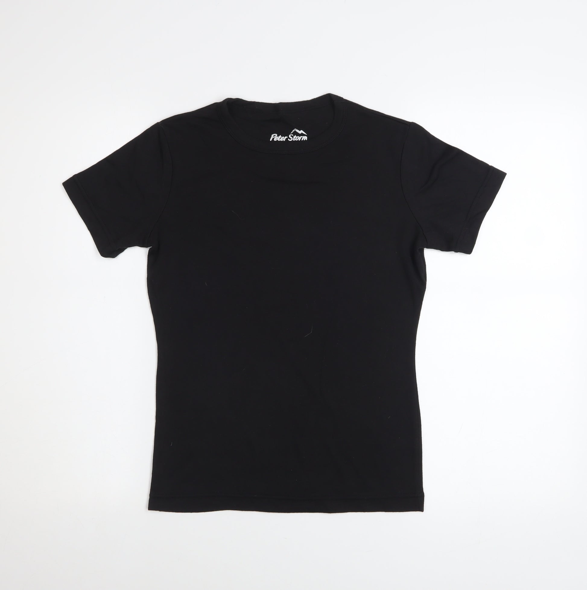 This Peter Storm women's black short sleeve T-shirt provides a timeless, practical staple for any casual wardrobe. Designed in a classic crew neck style for easy everyday wear, the T-shirt is made from a soft and flexible blend of 64% polyester and 36% viscose. This combination of materials ensures a lightweight, breathable, and comfortable feel, keeping you cool during warmer months while offering durability for regular use. The simple, solid black tone makes it an incredibly versatile piece that can be effortlessly styled with jeans, shorts, skirts, or layered under jackets and cardigans. Whether you're dressing for a laid-back day out, travelling, or want a reliable base layer for everyday wear, this T-shirt fits perfectly into any setting. Designed to flatter a size 12 regular fit, the short fitted sleeves and straight hemline offer a clean, polished structure ideal for layering or wearing alone. Its easy-care fabric allows for hassle-free maintenance—machine washable and designed to retain shape and colour even after multiple washes. The jersey fabric gives it flexibility and comfort without sacrificing breathability, while the soft surface feels gentle against the skin. Subtle yet essential, this Peter Storm basic black tee bridges functionality and effortless style. With an “excellent” pre-owned condition, it remains free from visible damage or fading, showing only light prior use. Its versatility and comfort make it a must-have wardrobe basic for all seasons. Ideal for casual weekends, walking holidays, travel adventures, or simply relaxing at home, it encapsulates comfort and dependability. Add this Peter Storm women’s T-shirt to your wardrobe for an easy-wear essential that never goes out of style—perfectly balanced between practicality, lasting quality, and understated design.