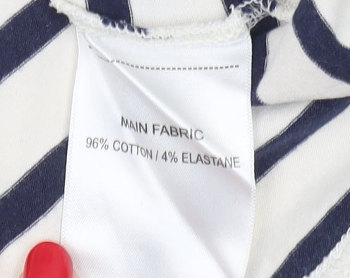 White Stuff Women's Blue Striped Cotton T-Shirt Size 14