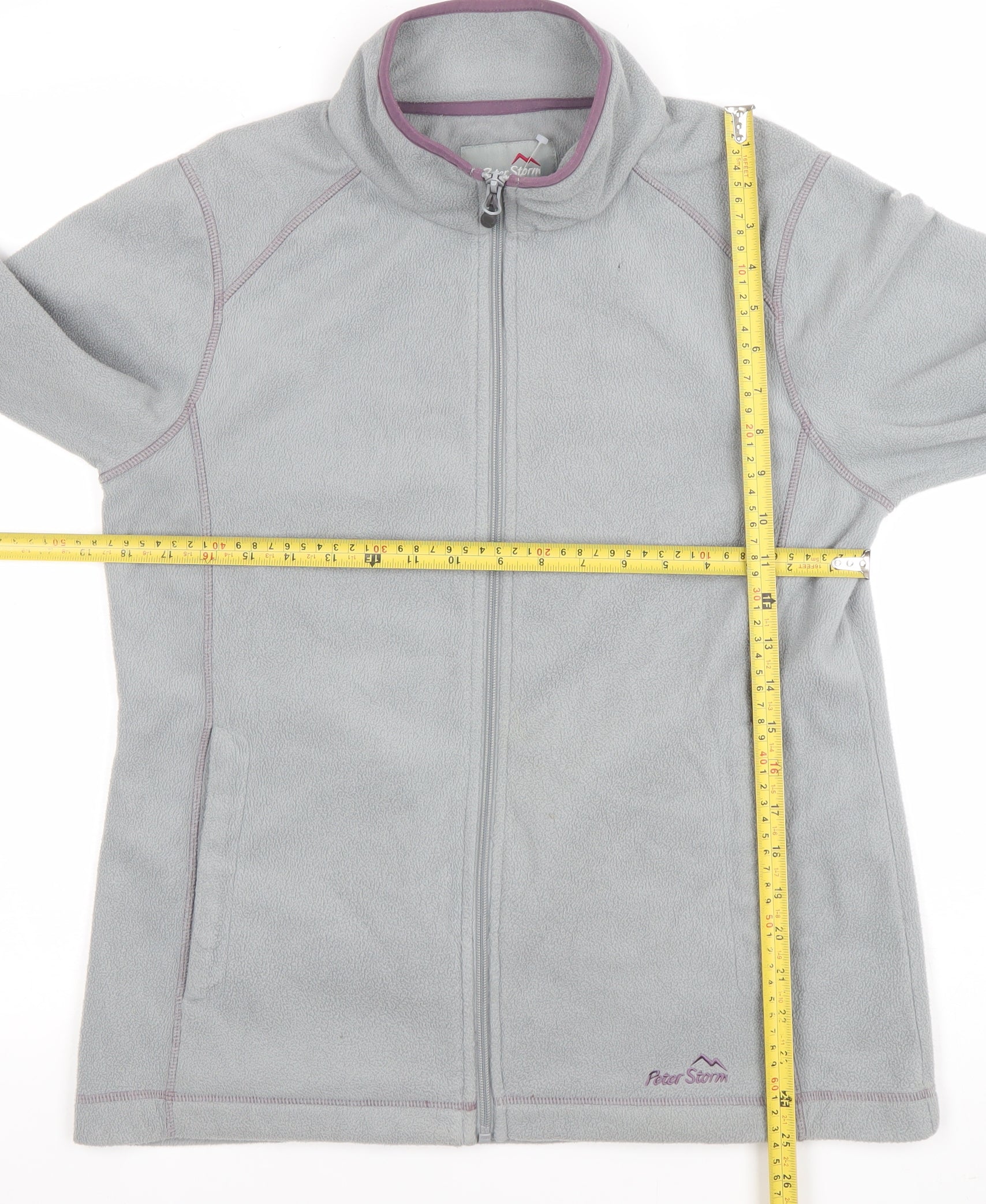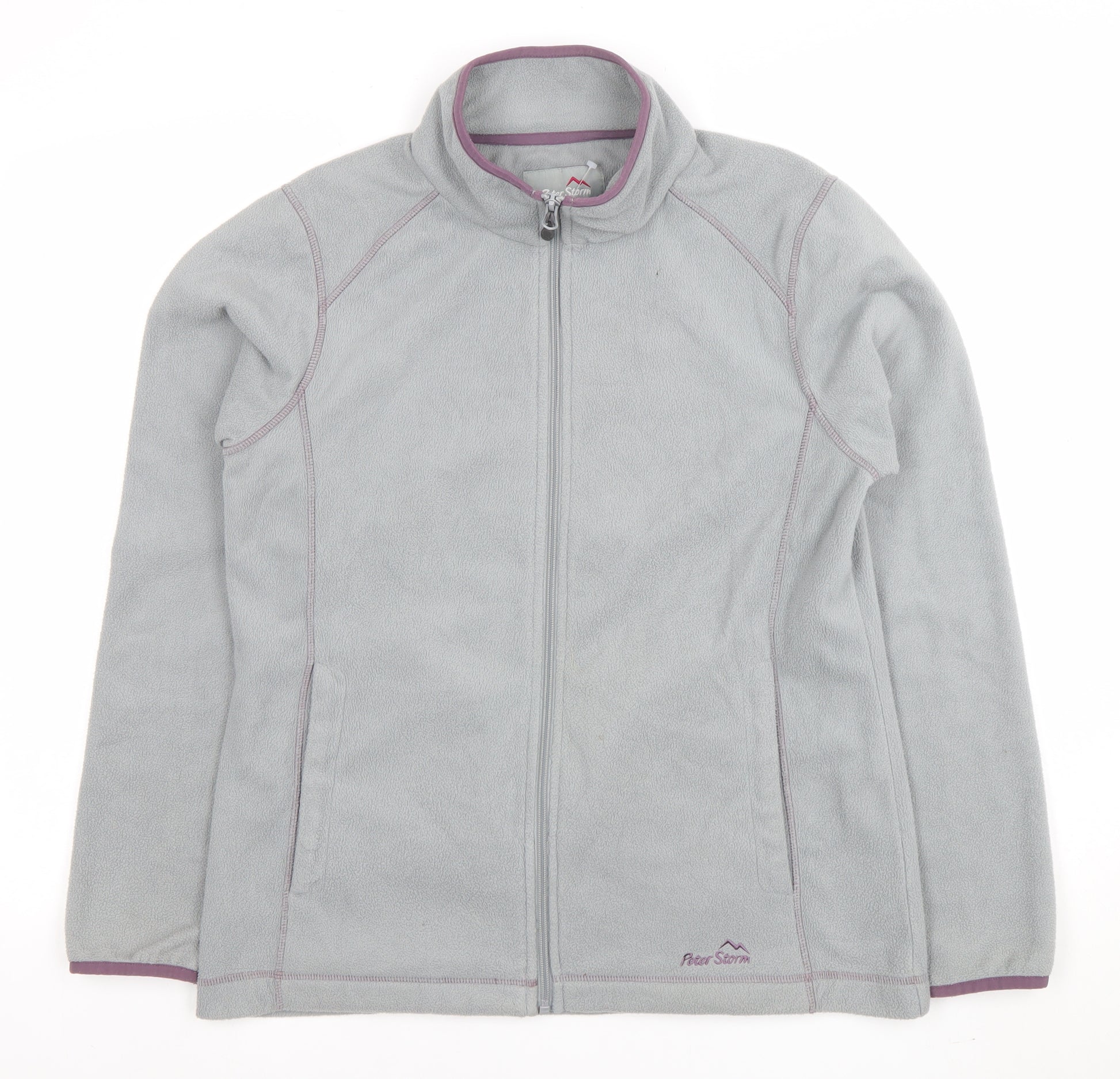 Stay cosy and stylish in this Peter Storm Women's Grey Full Zip Fleece Jacket, designed for everyday comfort and versatility. Crafted from soft 100% polyester fleece, this mid-length jacket provides excellent warmth while remaining lightweight and breathable. With its full zip closure, it’s perfect for layering over casual outfits or activewear, keeping you comfortable whether you’re out walking, travelling, or relaxing on cooler days. The timeless grey colour paired with practical pockets adds everyday functionality and a touch of simplicity that suits any wardrobe. Designed in a regular fit with long sleeves and durable stitching, this fleece jacket combines practicality and comfort without compromising on style. The subtle Peter Storm logo accents on the front elevate the look with an outdoorsy feel, making it ideal for hiking, walking, or running errands. Machine washable for easy care, this piece is made to last and maintain its soft, cosy texture wash after wash. Whether you’re heading for a brisk morning walk or layering up during the autumn and winter months, this Peter Storm fleece jacket is a dependable essential addition to any wardrobe. It offers warmth, comfort, and durable quality expected from an outdoor-inspired brand. In excellent pre-loved condition, showing only light signs of wear, this versatile jacket is a fantastic choice for those looking for performance and comfort at a great value.