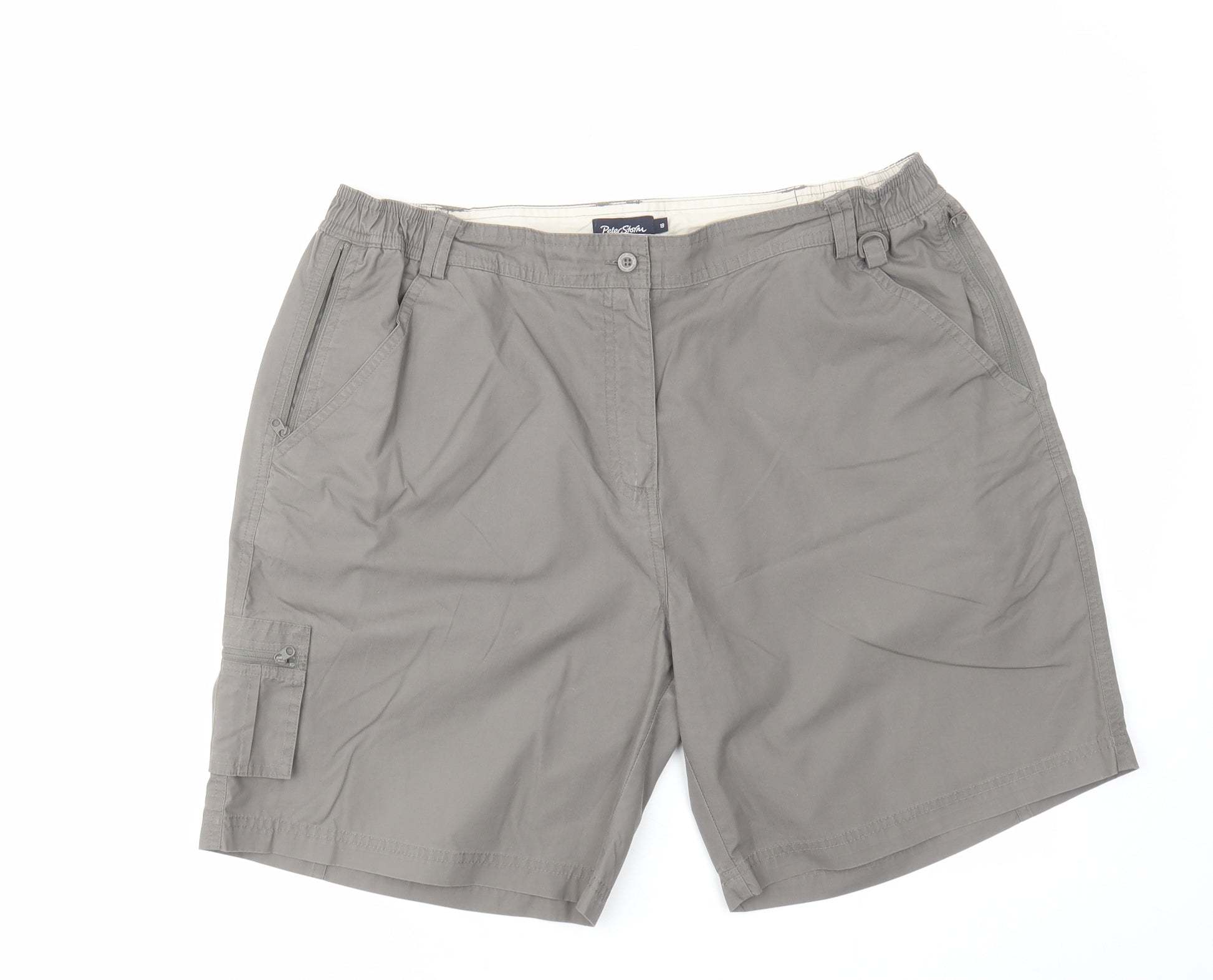 Womens Grey Polyester Cargo Shorts Size 18 L9 in Regular Zip