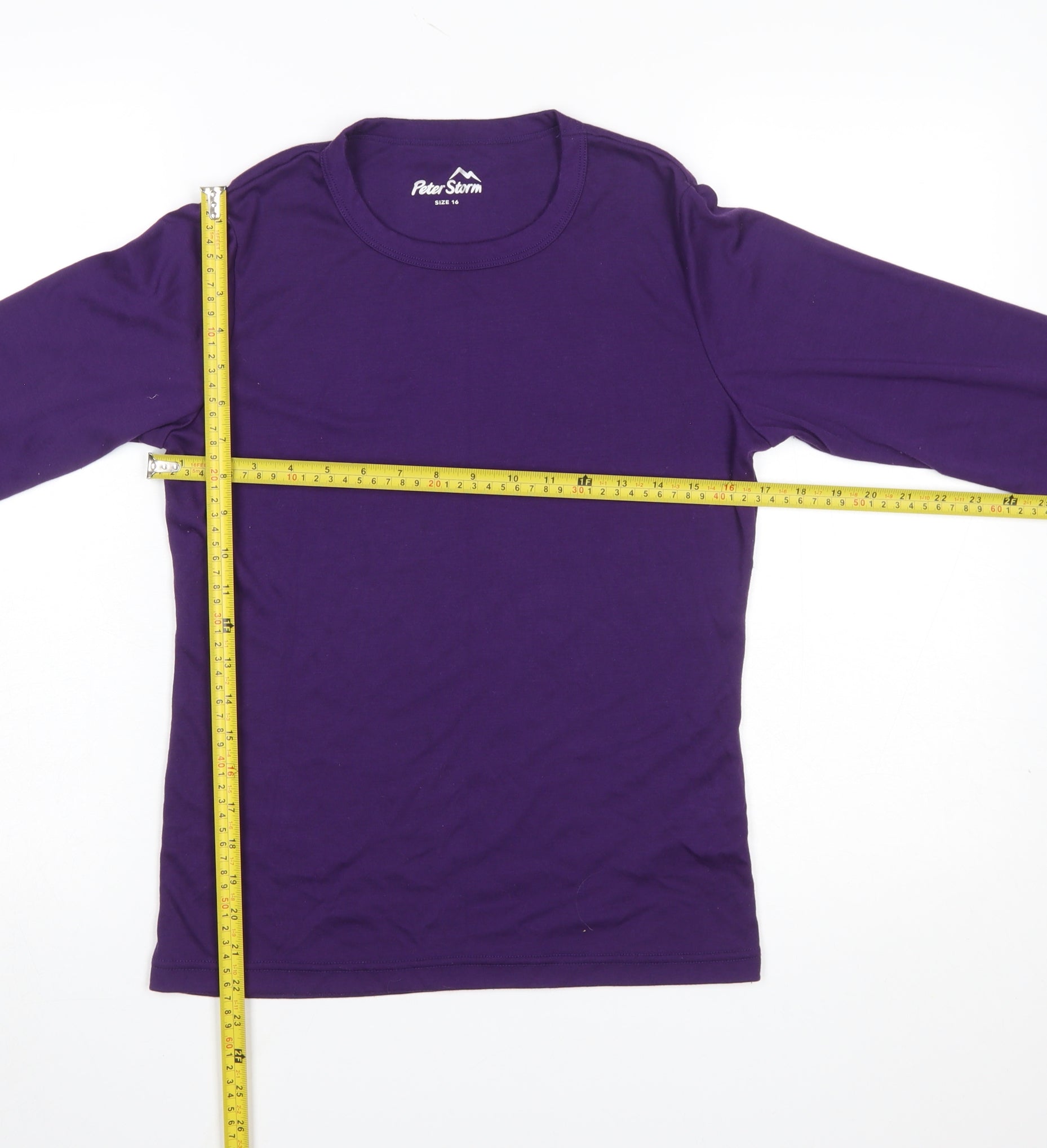 This Peter Storm women’s long sleeve T-shirt in a rich purple hue offers both comfort and versatility for any casual wardrobe. Made from a soft and breathable blend of polyester and viscose, the top provides lightweight warmth while retaining an easy-care, machine-washable finish. The simple crew neckline and classic fitted long sleeves create a flattering silhouette suitable for layering or wearing on its own during cooler seasons. Designed in a solid colour with a smooth jersey fabric texture, this piece effortlessly complements jeans, joggers, or outdoor walking gear for a relaxed but stylish look.Perfect for transitioning between seasons, this regular fit top offers flexibility for layering under fleeces, jackets, or waterproof shells when the temperature drops. The comfortable pullover style makes it a functional everyday choice whether you’re out on a hike, running errands, or relaxing at home. Its breathable material composition helps manage moisture, keeping you feeling fresh throughout the day while still maintaining softness even after multiple washes. A must-have essential from a trusted outdoor brand, this Peter Storm T-shirt combines durability and practicality with a timeless design. It delivers both warmth and comfort without compromising on style, ideal for an active yet laid-back lifestyle. Its classic long-sleeve cut ensures reliable coverage while the soft-touch jersey stretch offers easy movement. Suitable for autumn, spring, and winter layering, it provides an understated yet functional look that pairs well with outdoor apparel or casual everyday outfits. The top’s versatile nature makes it a wardrobe staple that can be worn hiking, travelling, or simply for everyday leisure.