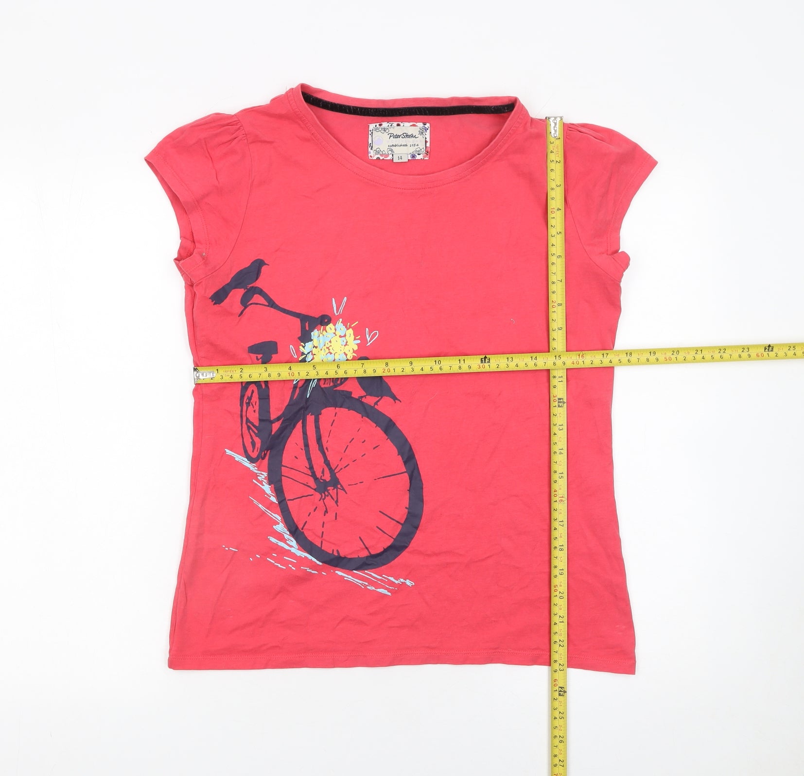 Womens Red Bicycle Graphic Cotton T-Shirt Size 14