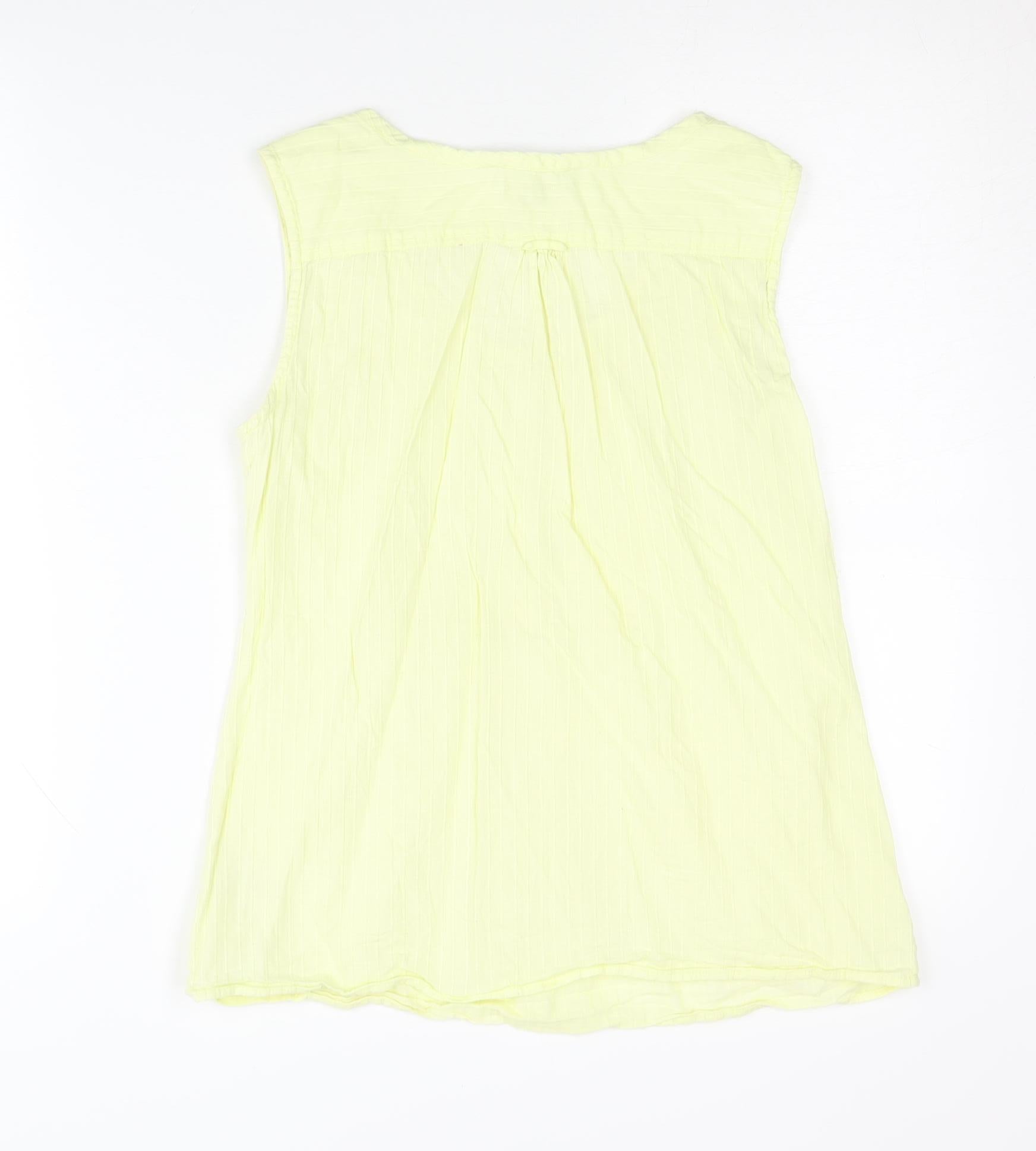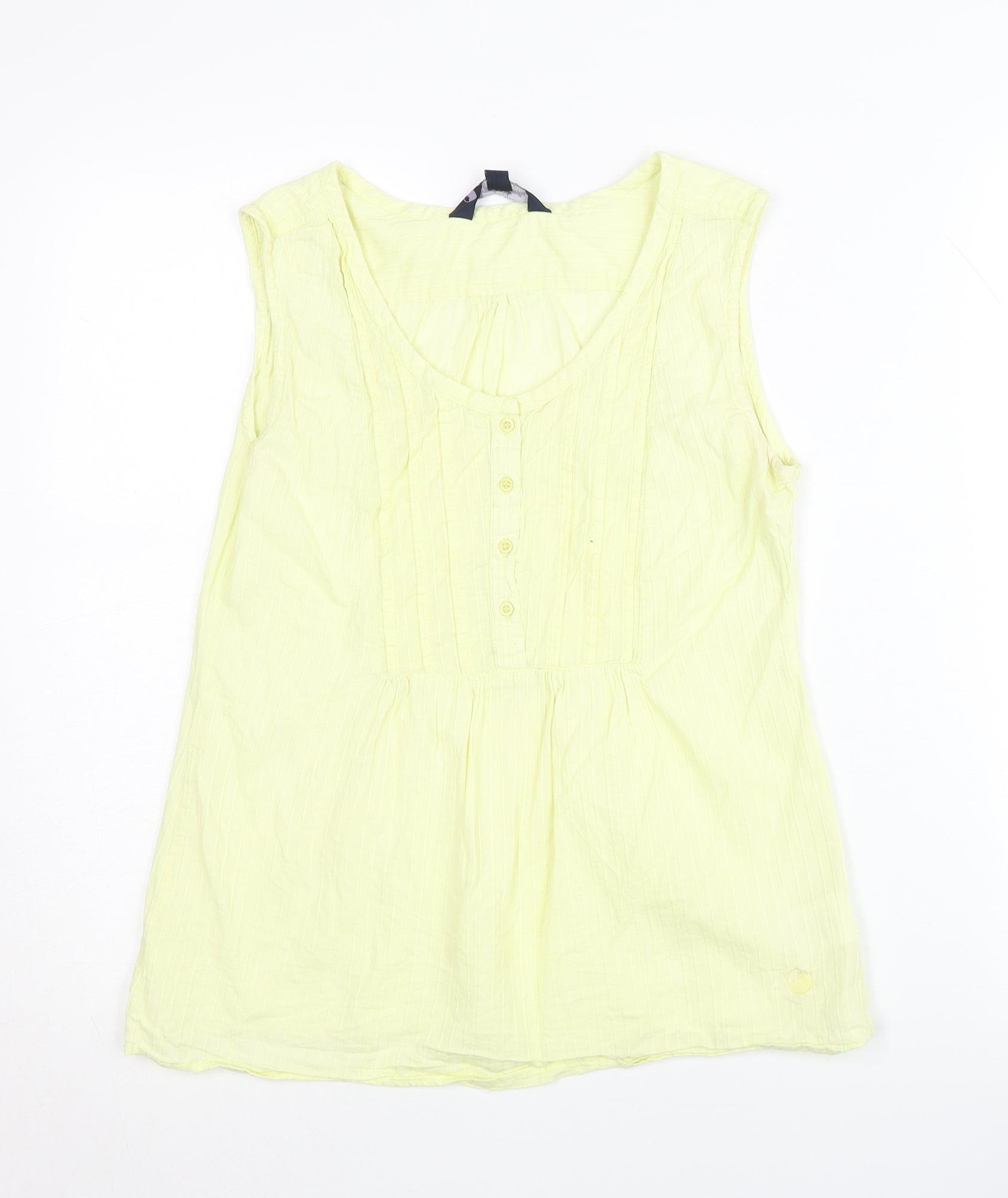 Discover an effortlessly chic addition to your wardrobe with this Peter Storm Women's Yellow Basic Blouse. Tailored in a comfortable size 10, this blouse promises a perfect fit and showcases a lively yellow hue that radiates sunshine and positivity, making it a vibrant choice for any sunny day. The sleeveless design and scoop neckline foster an airy, carefree vibe, perfect for the warmth of summer. Crafted from 100% Cotton, this blouse ensures a breathable experience, keeping you cool and comfortable no matter the occasion. The solid pattern adds a touch of simplicity and elegance, allowing you to mix and match this blouse with a variety of outfits. Accent buttons contribute to the blouse's casual and relaxed style, while maintaining a subtle sophistication. Ideal for casual outings, this versatile piece can transition seamlessly from a day at the beach to a casual meet-up with friends. Enjoy the benefits of a machine washable fabric, ensuring easy maintenance and longevity. With an attachment of affordability and style, this blouse epitomizes a blend of comfort and trends. Perfect for a laid-back yet stylish look, let this Peter Storm blouse complete your summer ensemble.