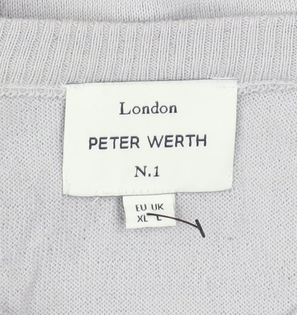 Add refined simplicity to your wardrobe with this Peter Werth men’s jumper in a versatile light grey shade. Crafted from a soft and breathable blend of 50% wool and 50% acrylic, this lightweight knit offers a balance of warmth and durability, making it ideal for layering during the cooler months. The crew neck and ribbed trims at the hem and cuffs ensure a comfortable and classic fit, while the finely knit fabric provides a smooth finish that gives a polished casual look.Designed with a timeless aesthetic, this pullover jumper from Peter Werth London delivers effortless style whether paired with chinos for a relaxed weekend outfit or dressed up with tailored trousers for a refined smart-casual appearance. The subtle embroidered chest logo adds understated branding without overpowering the minimalist design. With long sleeves and a regular fit, this jumper provides easy wearability and suits a range of body shapes comfortably.Suitable for autumn, winter, and spring, the wool blend construction helps maintain warmth while remaining breathable, making it a practical all-seasons wardrobe essential. Care is simple with hand wash instructions to maintain fabric quality and shape. This versatile grey jumper is ideal for casual occasions or everyday outings, offering a premium feel with a smart finish that’s unmistakably Peter Werth.In excellent pre-owned condition with only light signs of wear, this jumper presents superb value for a high-quality brand piece. Perfect for those who appreciate effortless sophistication and a well-cut, modern look without compromising comfort or practicality. A must-have layering staple for the modern gentleman, ready to elevate any outfit with understated elegance.