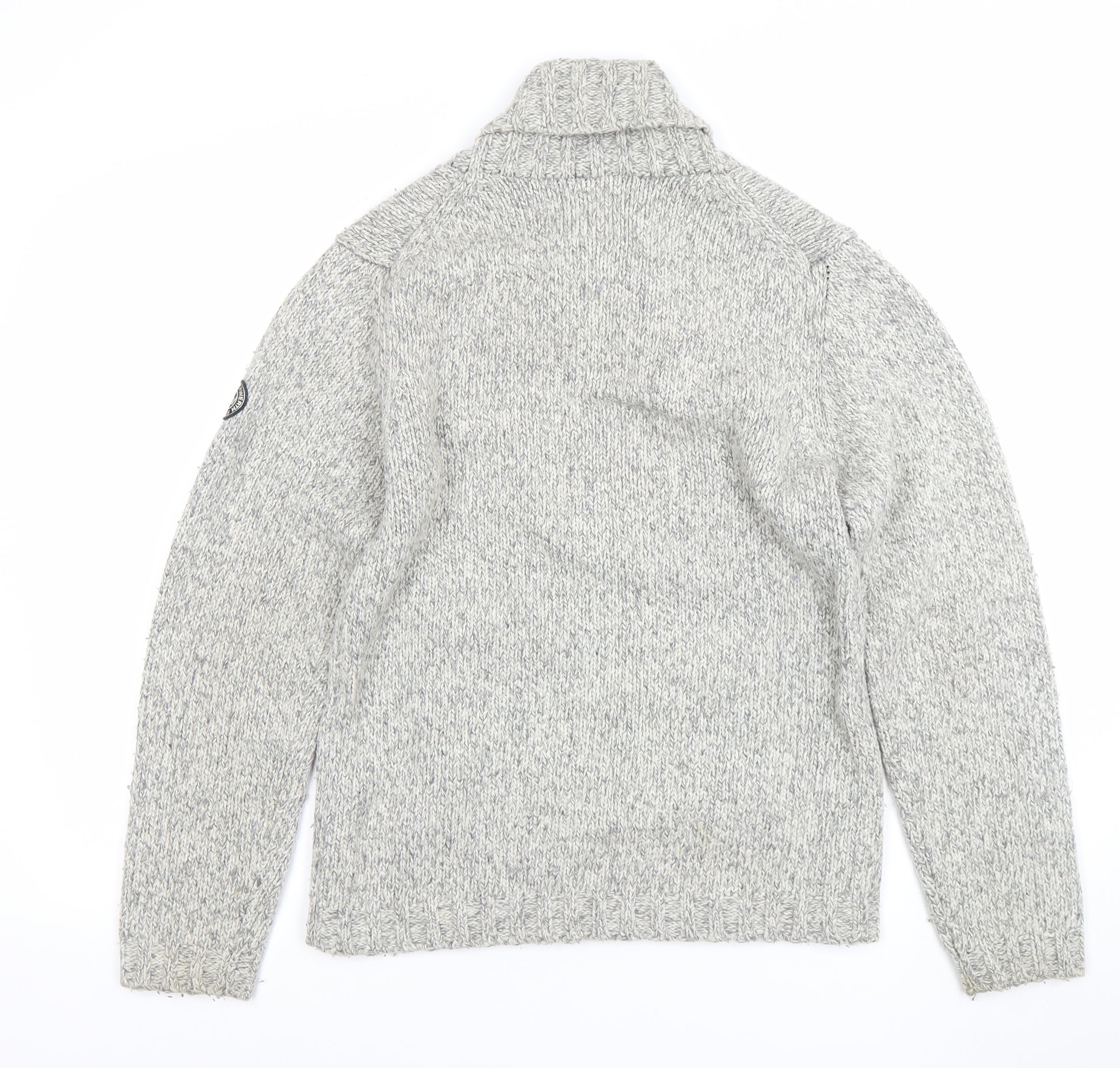 Men's Grey Shawl Neck Cable Knit Jumper Size M