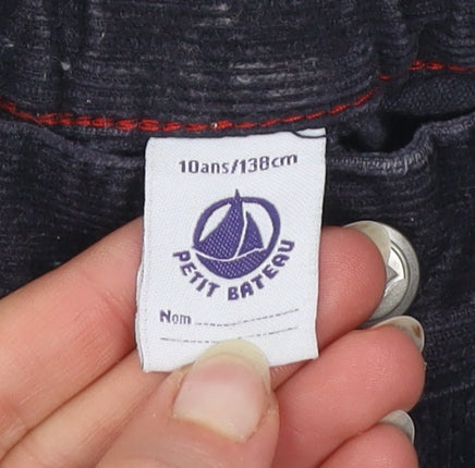 These Petit Bateau boys’ black corduroy trousers are the perfect combination of comfort and everyday style, ideal for casual or school wear during the cooler seasons. Crafted from soft 100% cotton corduroy fabric, they offer a cosy and breathable feel while providing durability for active kids. The black colourway is timeless and versatile, pairing effortlessly with jumpers, shirts, or tees for a smart yet relaxed look. Designed in a chino style, these trousers feature a button and zip fastening complemented by an elasticated waist with an adjustable interior for a comfortable, secure fit. The regular fit cut offers freedom of movement, while the sturdy corduroy texture adds a touch of classic charm to the outfit. Practical front and back pockets give space for small essentials, making them as functional as they are fashionable. Ideal for autumn and winter, these trousers keep warmth in without compromising on breathability. Their machine washable fabric ensures easy care for busy parents. Perfect for school days, family outings, or weekend play, they embody Petit Bateau’s reputation for quality and timeless French design.Presented in excellent used condition, with only very light signs of wear on the knees and no visible damage or stains, these high-quality trousers still have plenty of life left in them. A dependable wardrobe staple that balances comfort, durability, and style, these Petit Bateau black corduroy chinos will quickly become a go-to choice for any boy’s wardrobe. A practical, stylish, and sustainable purchase for parents seeking well-made children’s clothing that endures beyond the season.