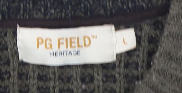PG Field Men's Brown V-Neck Cable Knit Jumper Size L Classic Acrylic