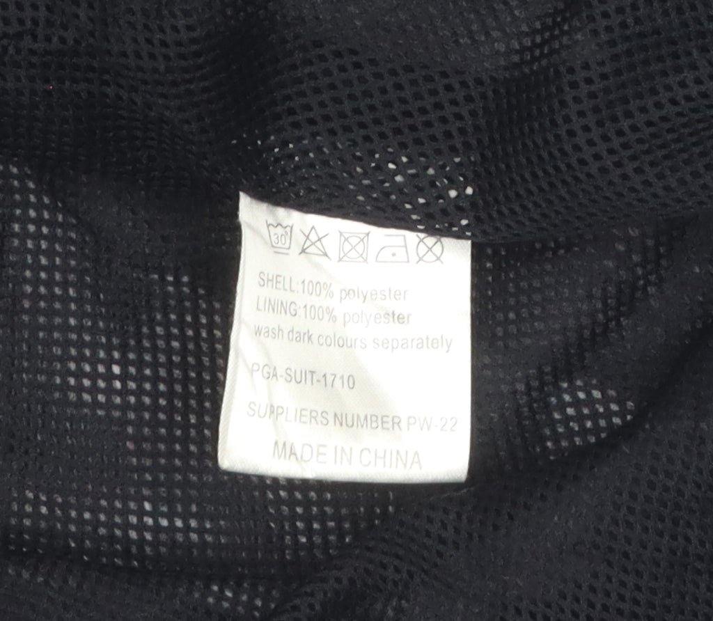 Elevate your sports wardrobe with this stylish and practical PGA Tour Men's Windbreaker Jacket. In a sleek combination of black and blue, this jacket is perfect for golf enthusiasts and other outdoor activities. Made from durable 100% polyester, it promises both comfort and breathability, making it ideal for spring, summer, and autumn wear. Designed with a regular fit, it includes useful features like zipped pockets for storing essentials securely and an elastic waist for a snug fit.The jacket boasts a classic, no-pattern design that ensures versatility and timeless appeal. Its long sleeves and stand-up collar add to its practical design, protecting you from the elements and providing added warmth. Whether you're walking the courses or exploring the outdoors, its lightweight construction makes this jacket an excellent choice for activewear.Easy to care for, this machine-washable jacket ensures convenience while retaining its excellent condition, showing only minimal wear. Enjoy the versatility and comfort this PGA Tour Windbreaker Jacket provides, making it a must-have addition to your activewear collection at an unbeatable price.